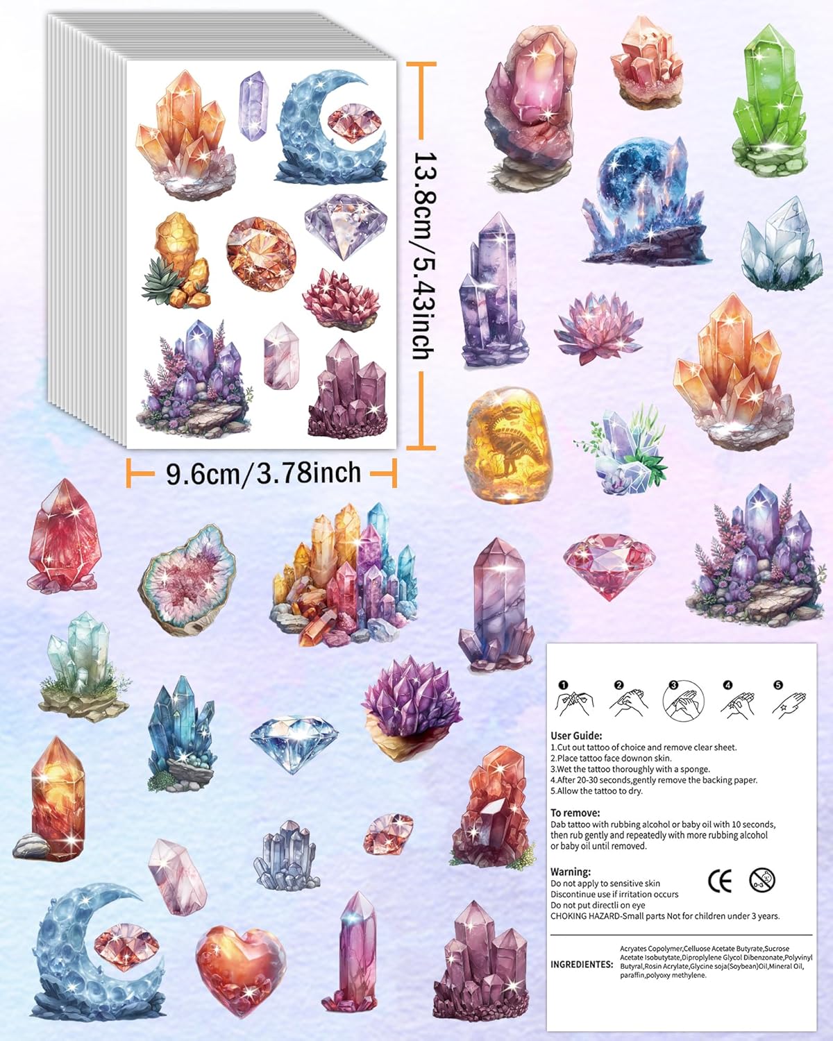 Versatile Party Decorations: Whether it’s a rock party, pool party or mining birthday, these crystal temporary tattoos are the perfect addition to your geology party supplies, serving as both gemstone party decorations.