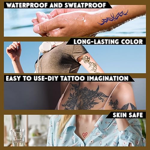 LONG-LASTING & WATERPROOF- High-quality temporary tattoos stay vibrant for 3-5 days, resisting water, sweat, and friction for a durable design.