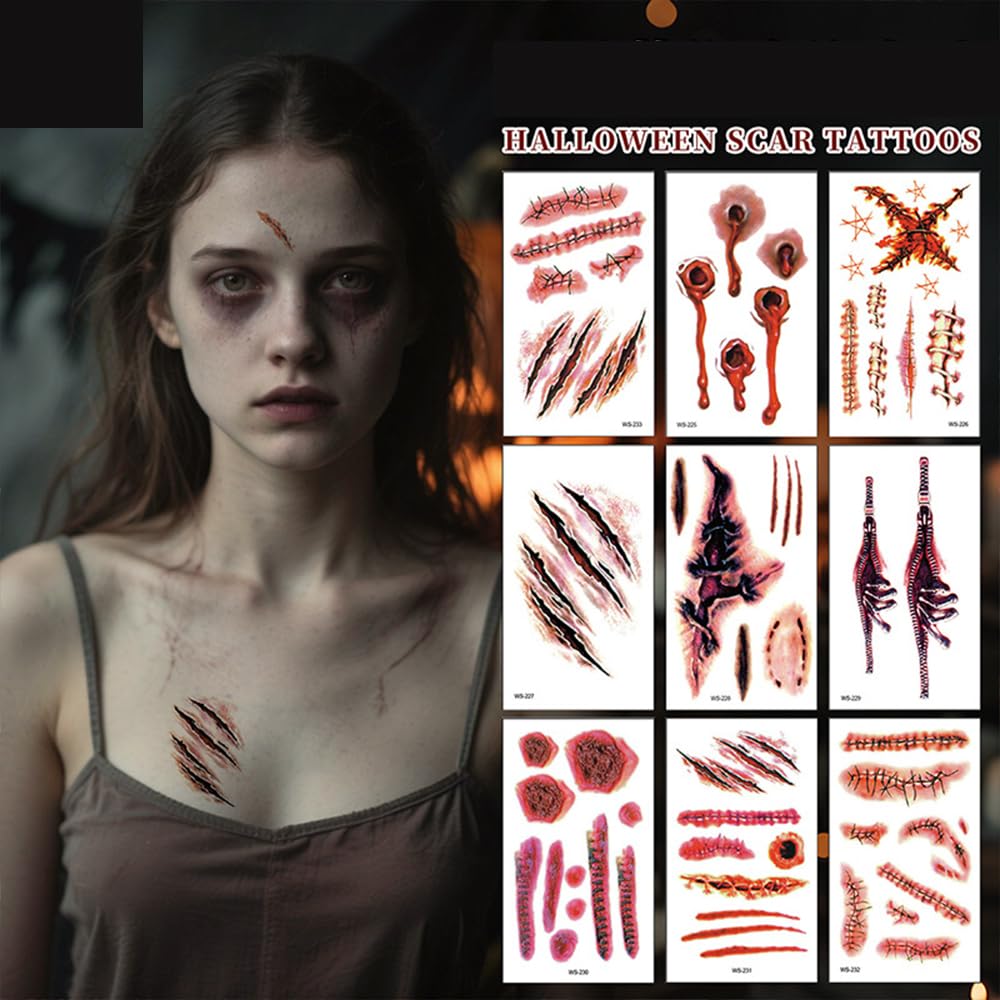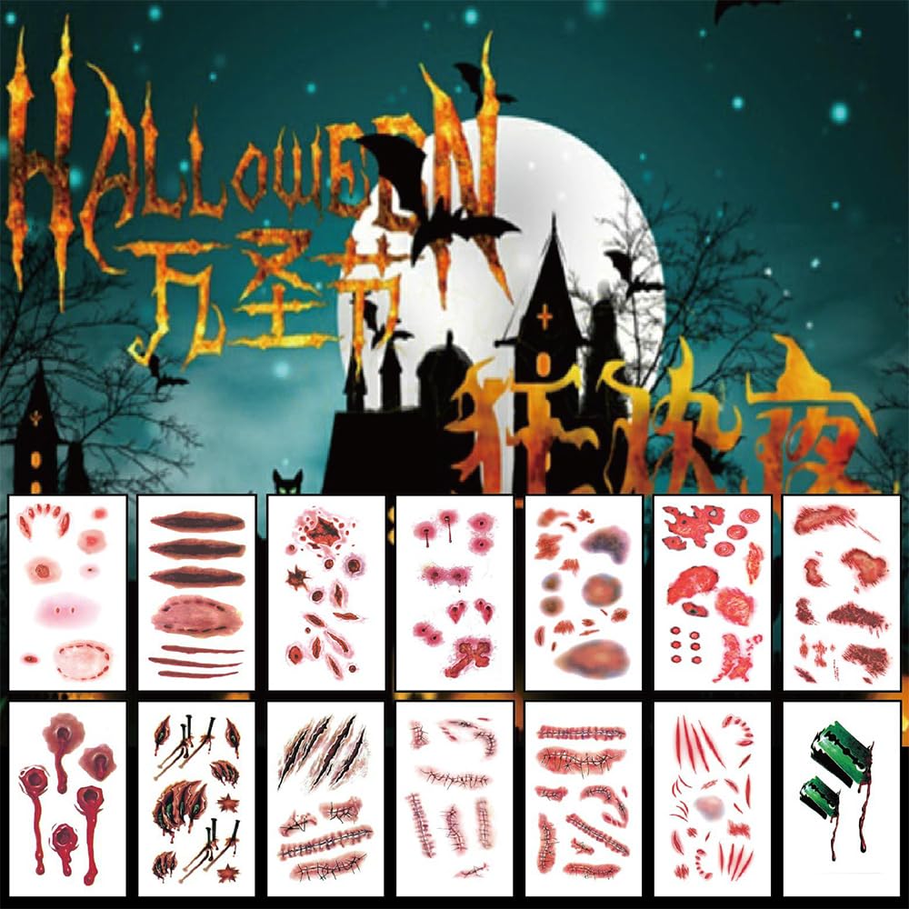 Comment on "24PCS Halloween Scar Temporary Tattoos for Adults Halloween Makeup Kit Sticke Scary, Bloody, Face Stickers Scratches Tattoos(24PCS)"