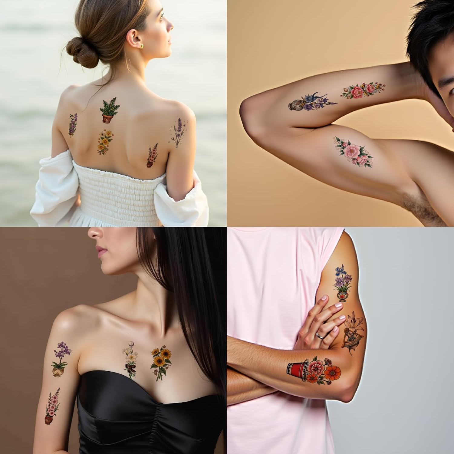 Waterproof & Self Adhesive: Flower temporary tattoos are made of water resistant plant ink transfer paper. Flower temporary tattoos can be easily used on the skin with no adverse reactions. The interesting tattoos are quick and painless