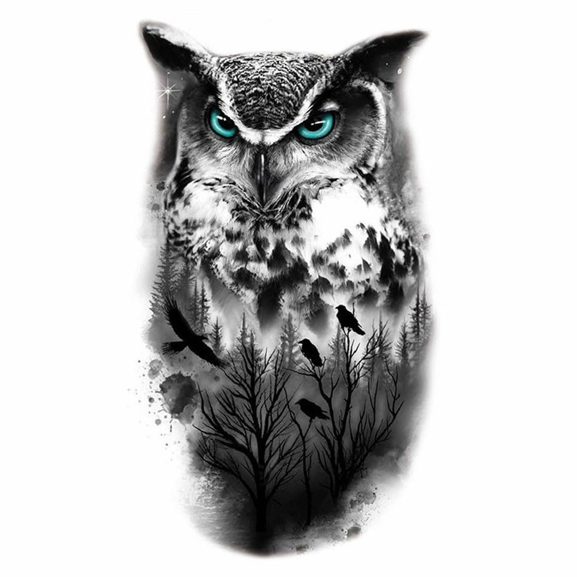 Comment on "2PCS Large Cyan Eyed Owl Body Tattoos for Men, Women, Adults, Kids, Realistic Black and White Lion Head Body Art Sticker, Flying Eagle Owl Body Chest Waist Arm Temporary Art Tattoos"