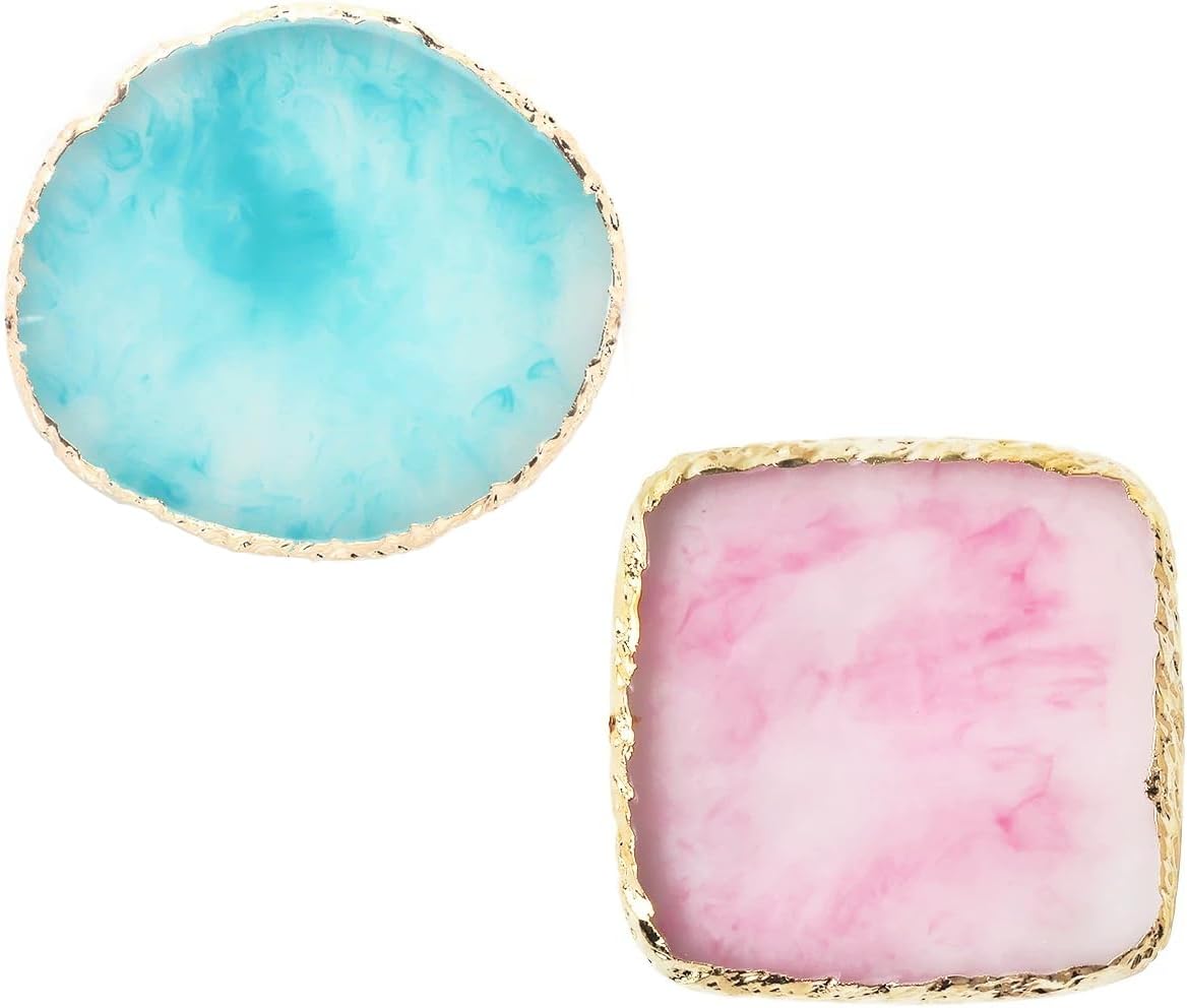 Exquisite design: These palettes are in agate stone style, and the edges are outlined in gold. It can be used to display the completed nail art works, and can also be used as a palette for makeup.