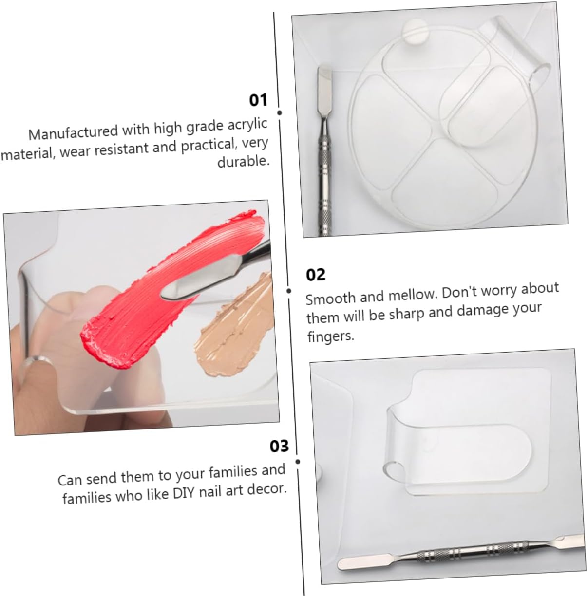 Manicure paint mixing tray: smooth and mellow, don't worry about them will be and damage your fingers,nail art color palette