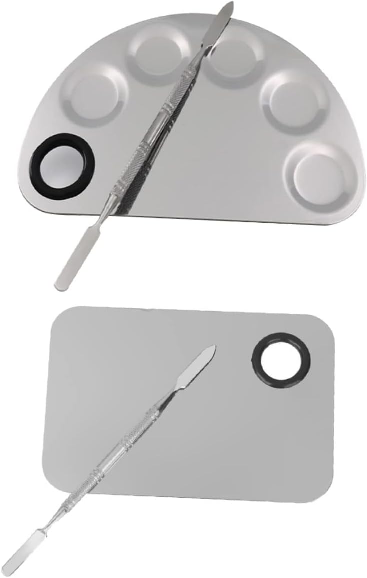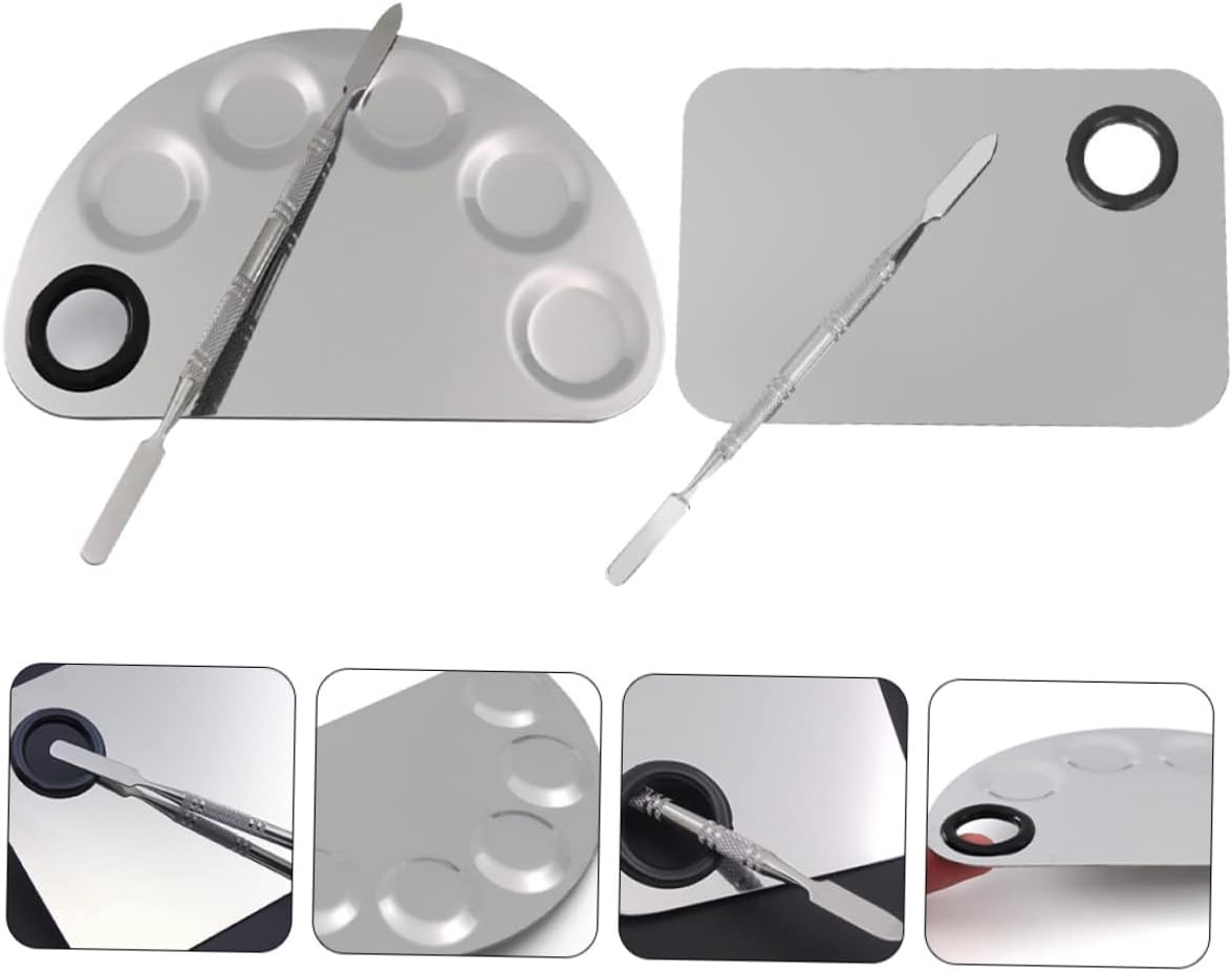 Paint drawing tray:the makeup pallet is made of stainless steel, smooth and bright, easy to clean,makeup mixing tray