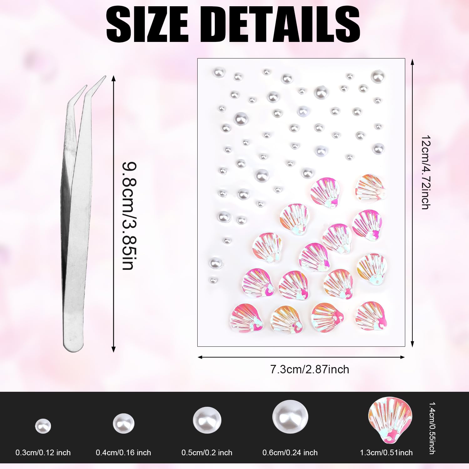 3/4/5/6 mm 61pcs Face Gems Stickers, with Pearl Round Diamond Jewels Diamonds Gemstones Stickers Festival Pink Shells Makeup Face Rhinestones Decorations for Crafts Nails