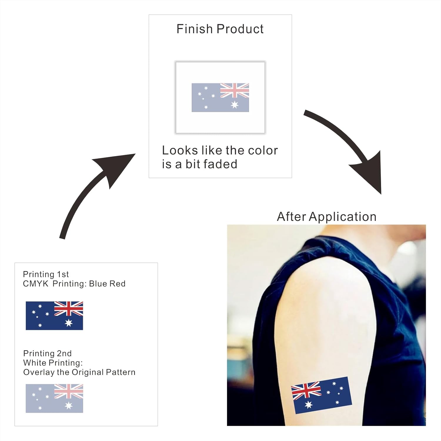 Suitable for people: the temporary flag tattoos pattern is small. Single pattern without cutting, more safer. Suitable for adults and kids. It can be used on the faces, arms and foreheads. Temporary flag tattoos can accompany you to watch the whole game or the whole season