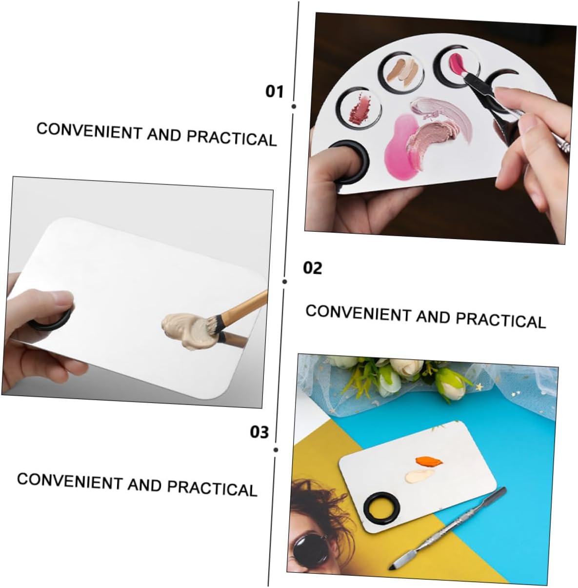 Nail color mixing-- the paint tray is in proper size and light enough for painters to hold in theirs hands, and wipe off quickly after painting,makeup pallete