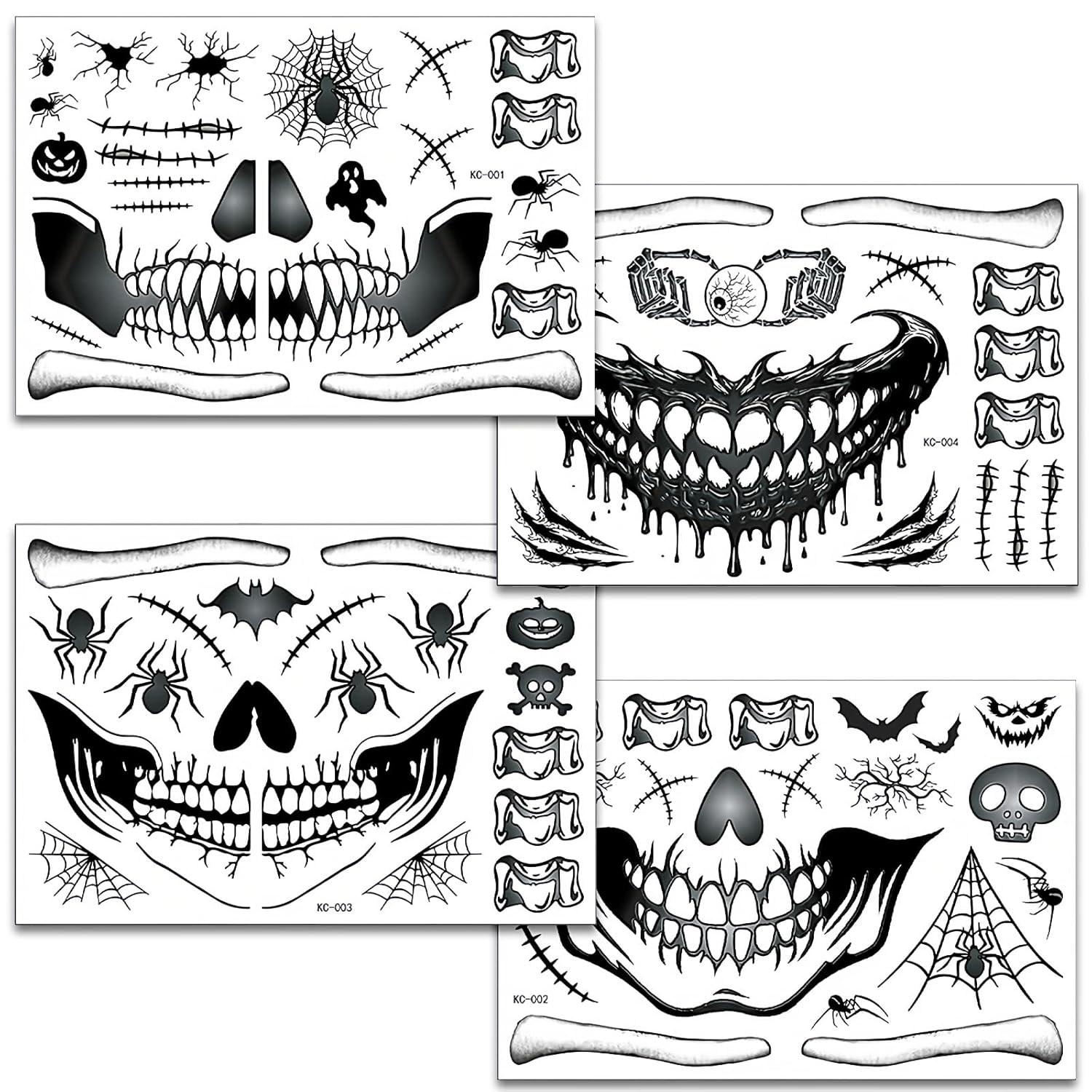 【Halloween Tattoos for Women】Transform your look with this set of 4 spooky Skeleton Mouth Tattoo stickers, perfect for Halloween parties and cosplay.