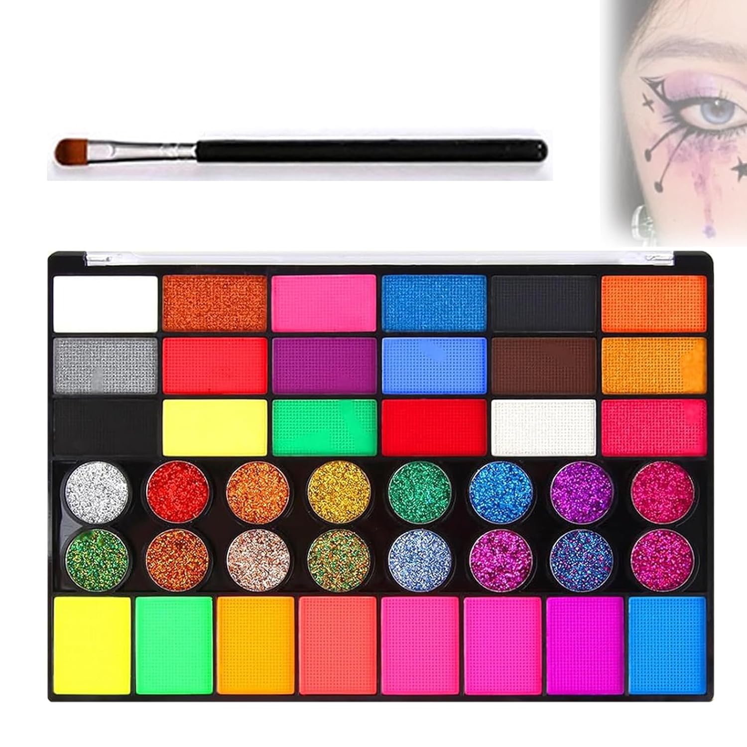 Scenarios: The Included Brush Simplifies the Creative Process. Spark Creativity During Halloween, Christmas, Or Stage Performances. With Its Water-Based Formula and Quick-Drying, Smudge-Proof Innovation, This Set Ensures Strong, Long-Lasting Makeup While Cleaning up Easily Without Residue.