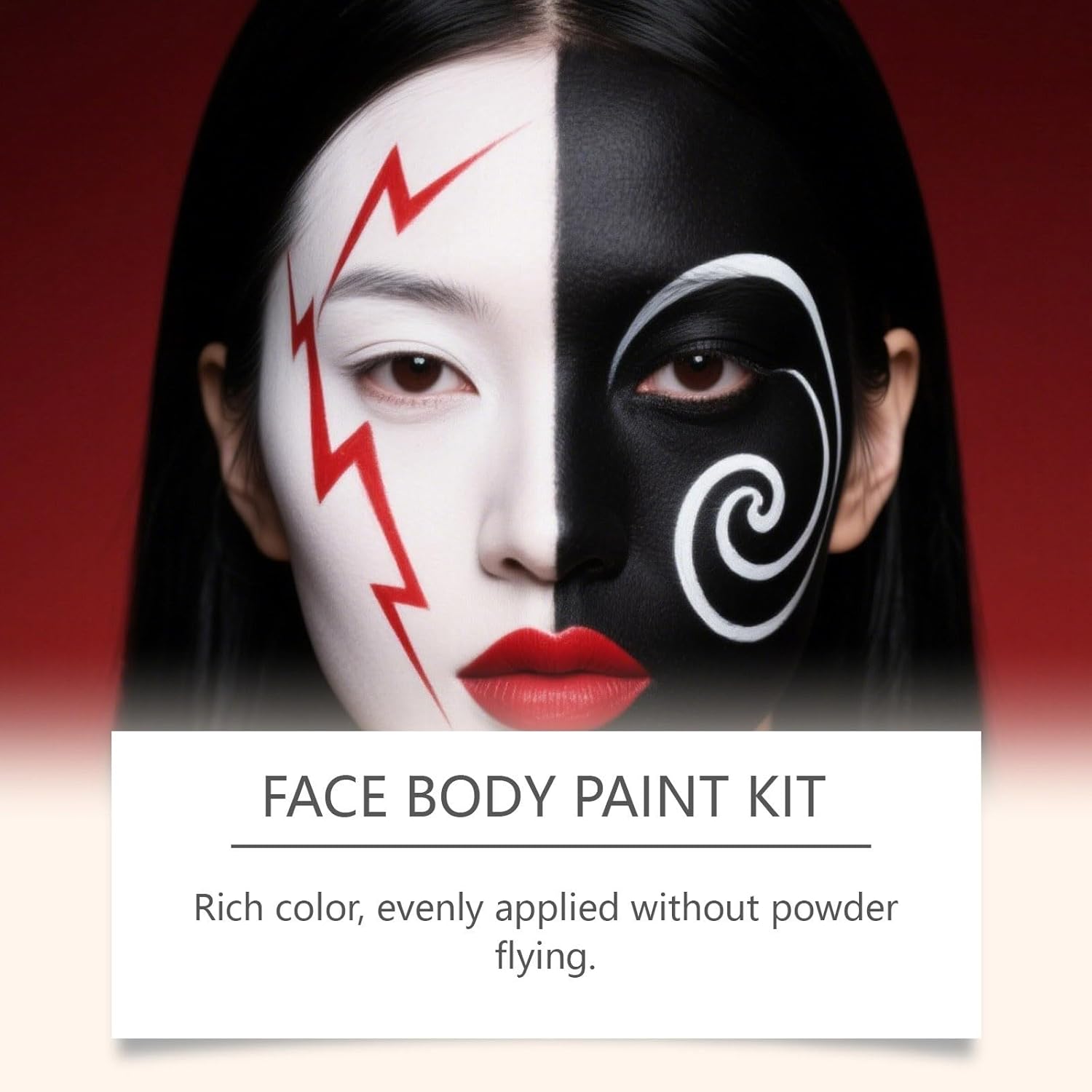 Face Body Paint Makeup: Face paint kits contains 3 color face paints and 3pcs painting brushes. The white-foundation face makeup paint is specially formulas like yet settles down to a finish. The black and red face paints, texture, are oil-based makeup paints that goes on smoothly and easy to blend and layer for opaque makeup.