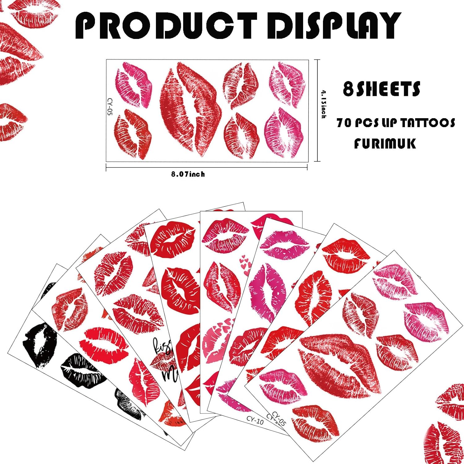 • Package includes: Each pack includes 8 sheets with a total of 70PCS lip tattoo, making them ideal as party favors, fun decorations, or even as a unique accessory for themed events.