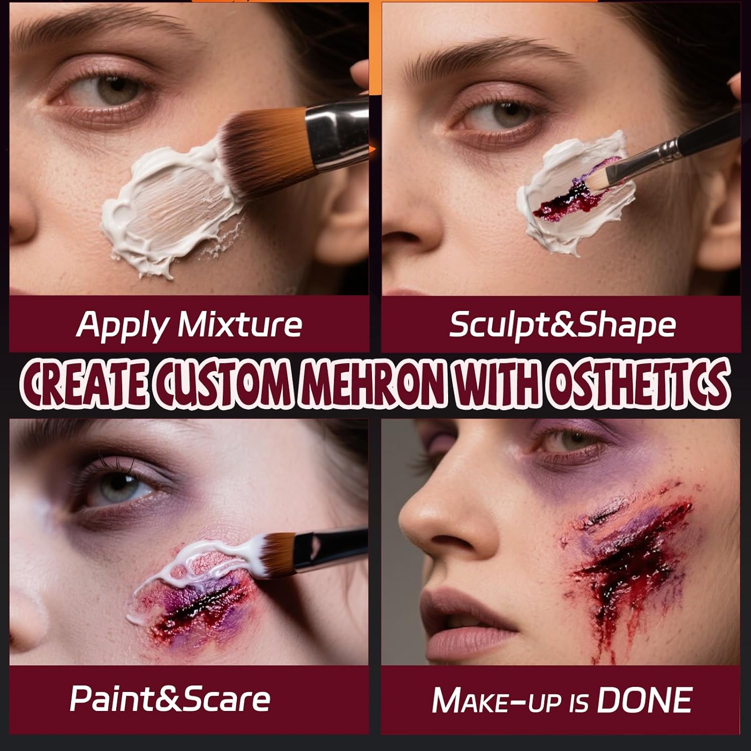 Realistic & Scary Looks – Our liquid latex is made from unique formula,it looks realistic on the skin, such as cuts, wounds, scars, burns, and wrinkles.Great for scars wounds and creepy looks during cosplay, Halloween parties or theatrical performances