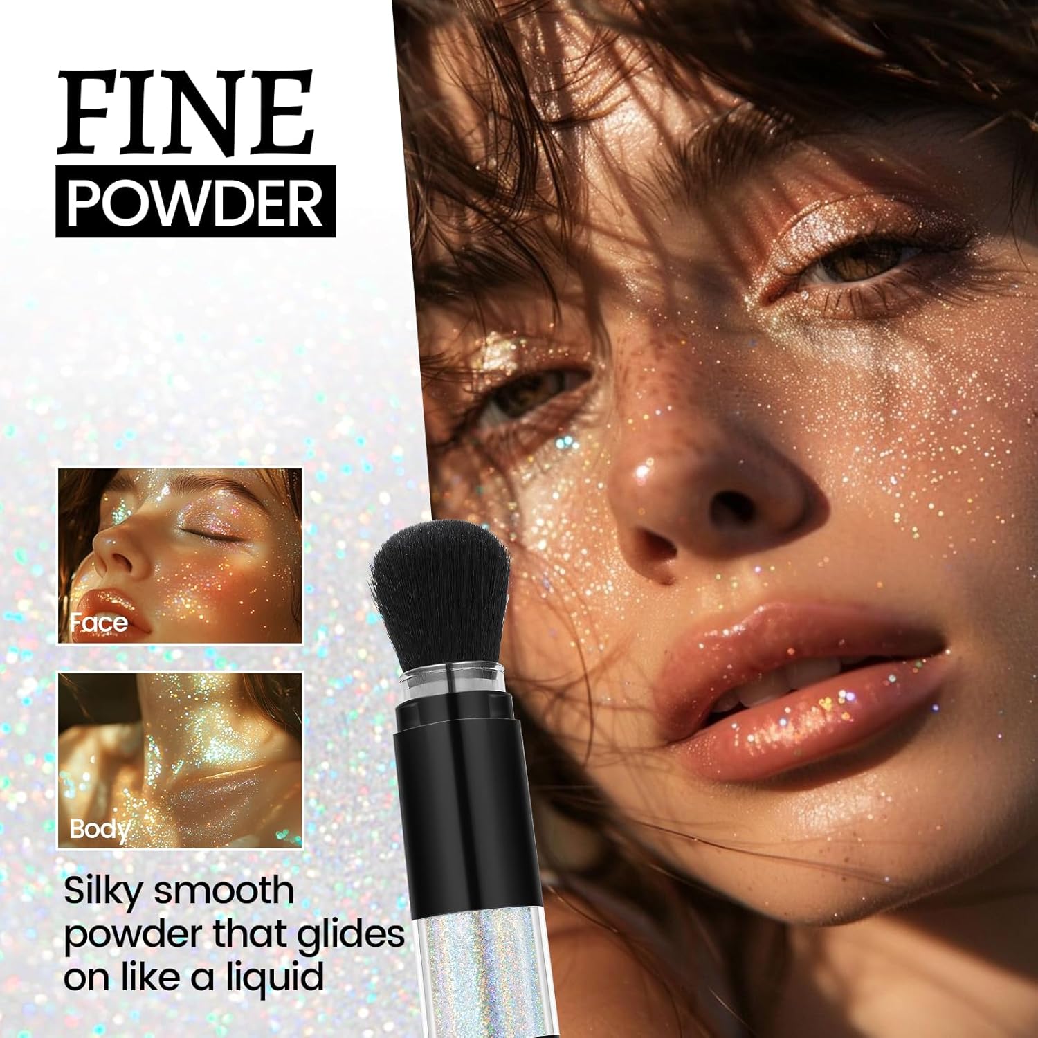 Body Glitter Powder: This body glitter has a brand new design and is a great option for applying holographic glitter. With just one swipe, you get a beautiful glitter that will make you shine in the crowd. The compact bottle is easy to carry around and comes with the same volume of glitter for replacement