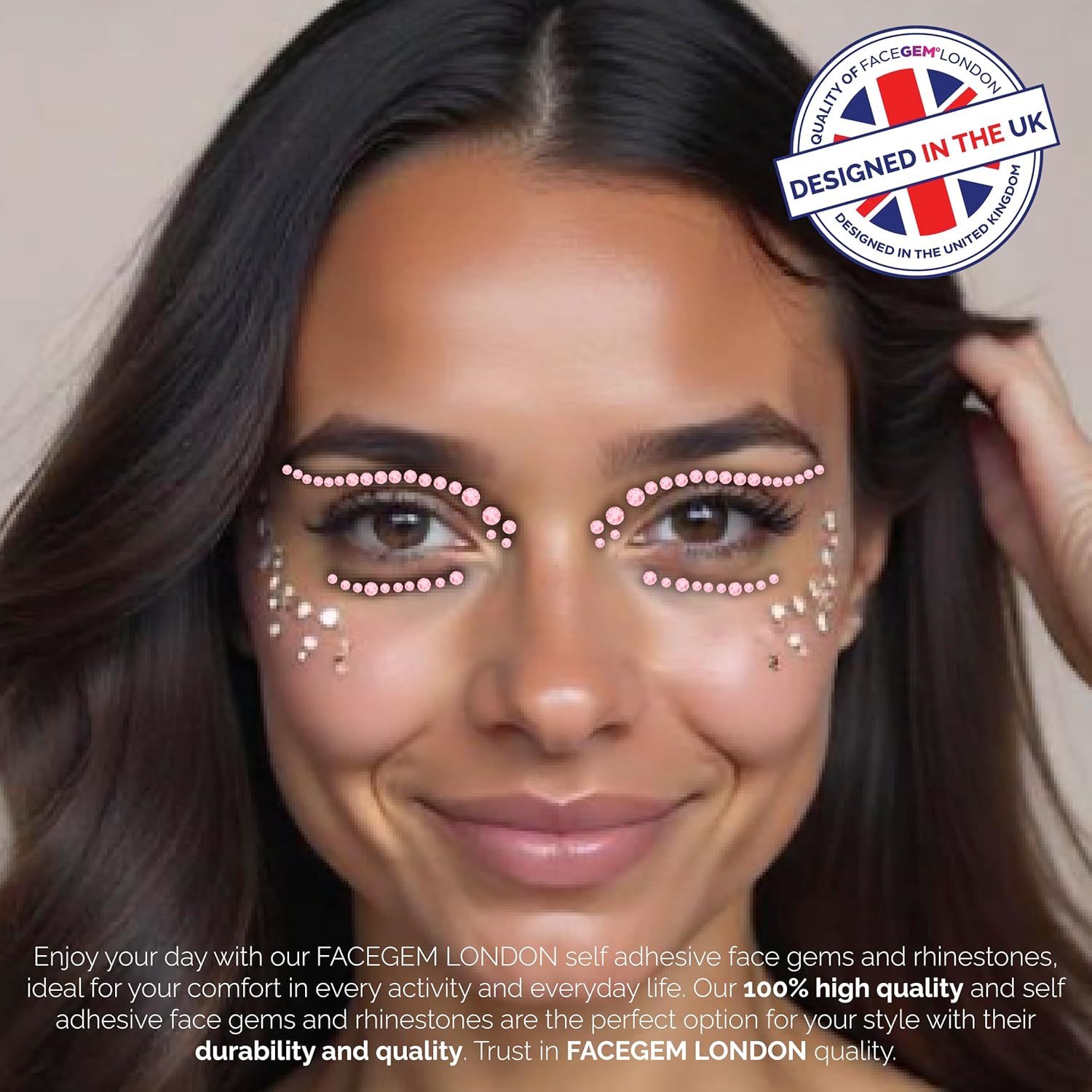 SELF-ADHESIVE DESIGN: Premium rhinestone face jewels with strong self-adhesive backing for secure application and easy removal