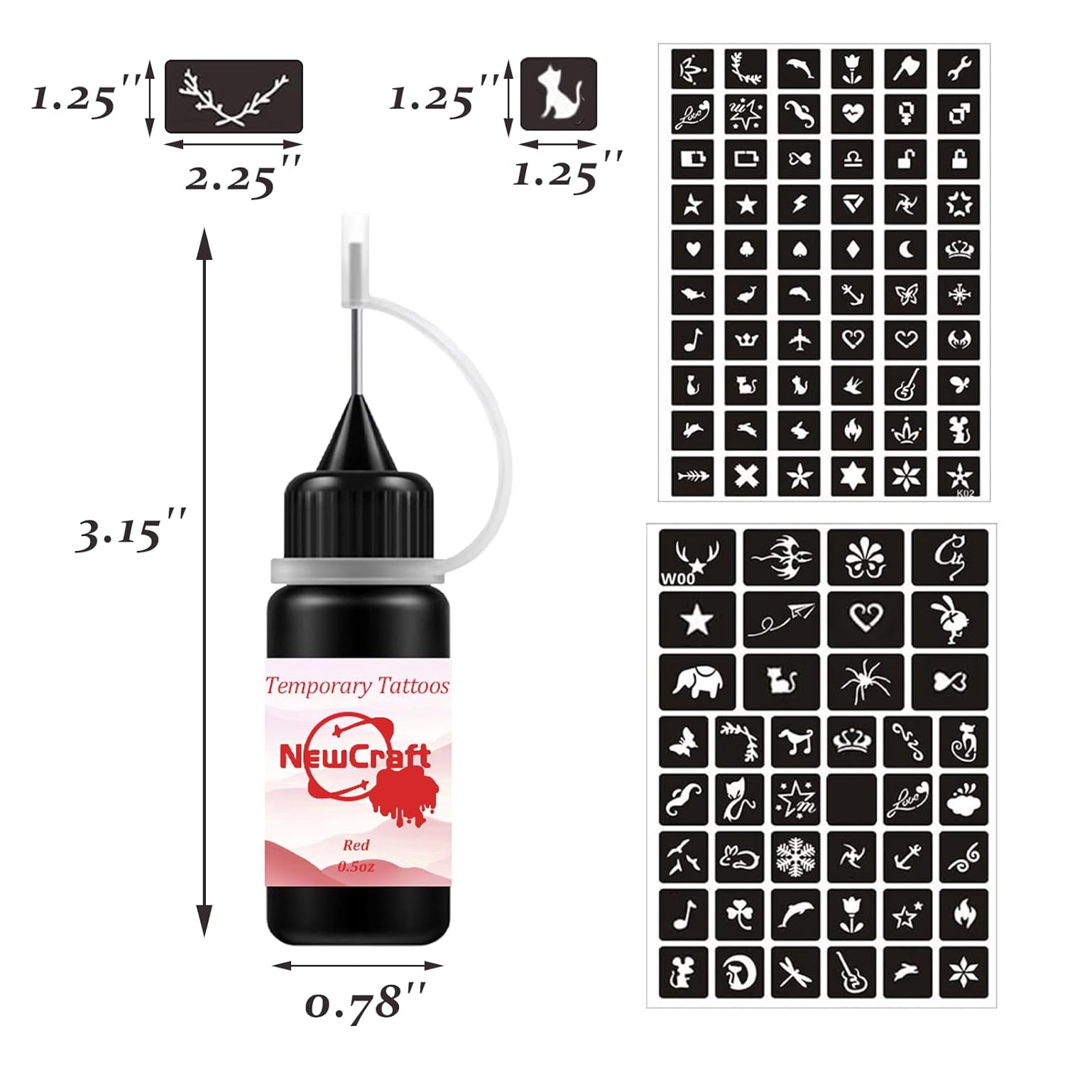 • Temporary Tattoo: You will get red total 3 bottles temporary tattoo inks temporary tattoo inks and 102 pcs small tattoo stencils Through them you can make exquisite small tattoos and get more favors