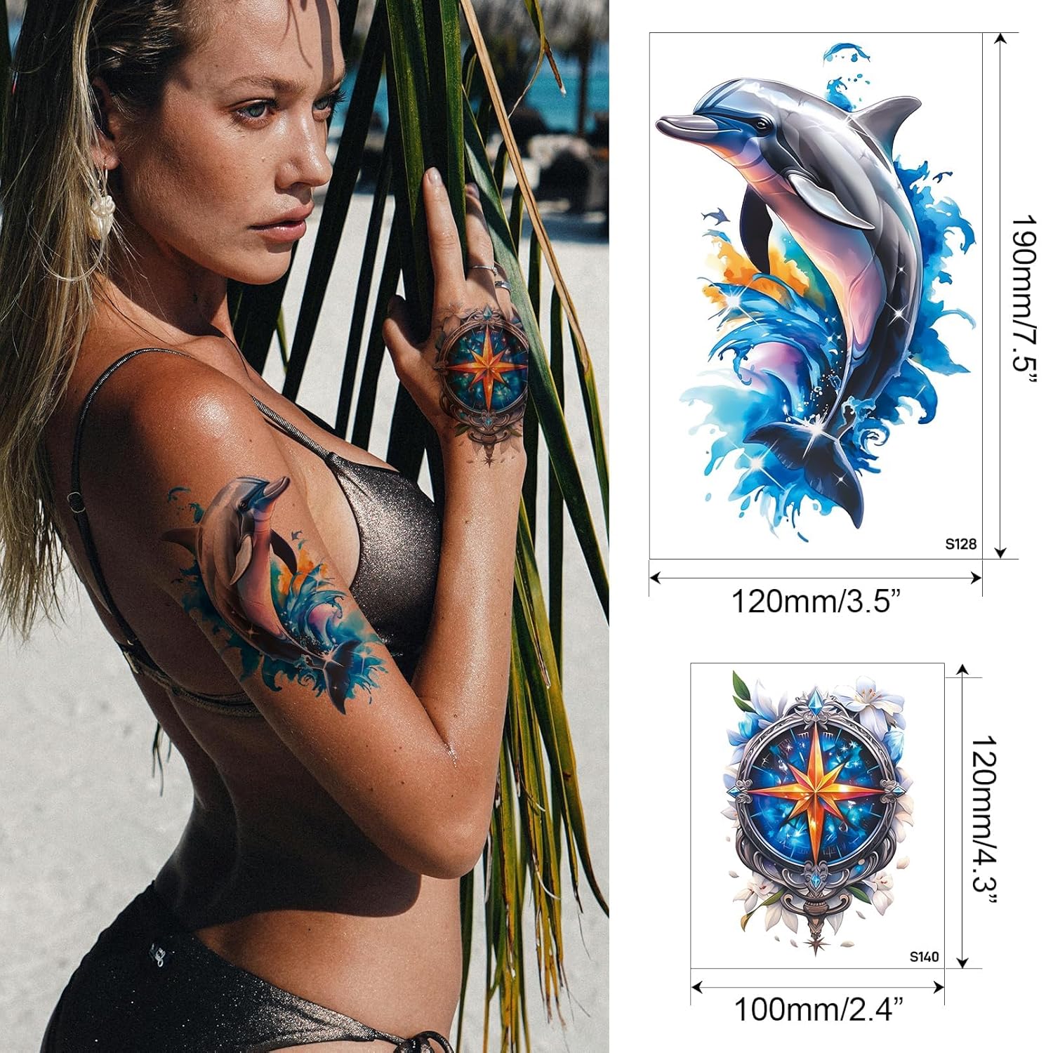 Rich Pattern Selection: Each set comes with 15 sheets of tattoos, including 7.24inches*4.72inches for 14 sheets and 4.72inches*3.93inches for 1 sheets , featuring a variety of majestic and exquisite animal patterns such as wolves, lions, birds, reindeer, peacocks, etc., to meet different aesthetic preferences.