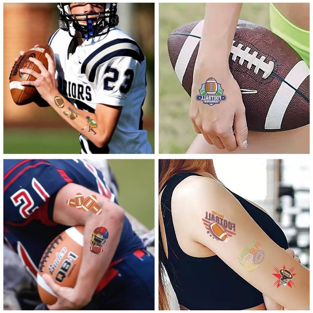EASY TO USE: Football party tattoos are easy to apply and remove, just wet the tattoo with water and press for about 20 seconds to complete the enviable look. Football tattoos typically last 3 to 5 days depending on the location and protection of the tattoo.