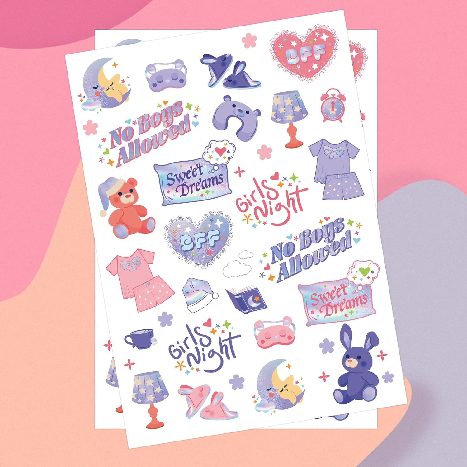 The Perfect Party Accessory: The temporary tattoos are perfect for sleepover party decorations or accessories, party supplies, party favors, DIY decorations and so on. Each sheet measures 8.25 " x 6 " creating the perfect size tattoos!
