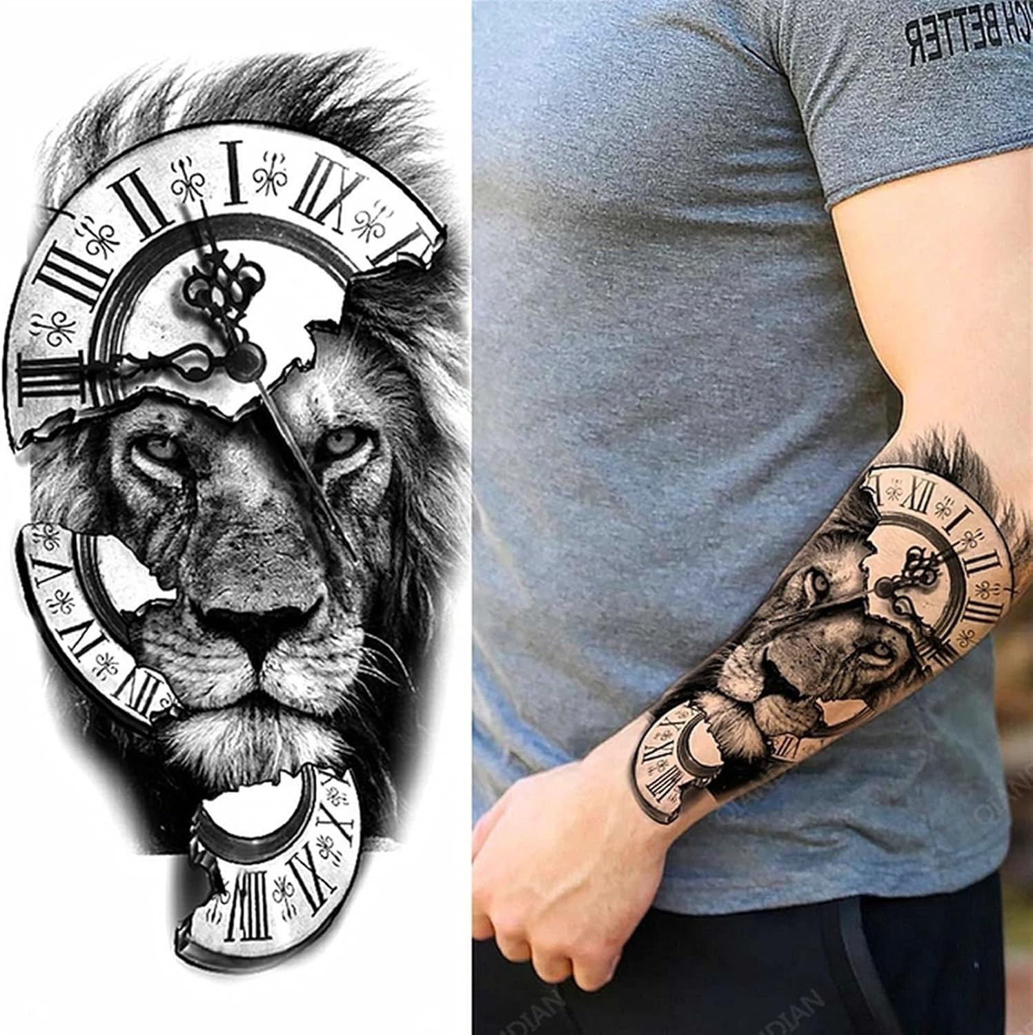 2pcs Lion Men Waterproof Temporary Tattoos Fake Stickers Arm Hand Art Tattoos(2pcs,210*114mm)