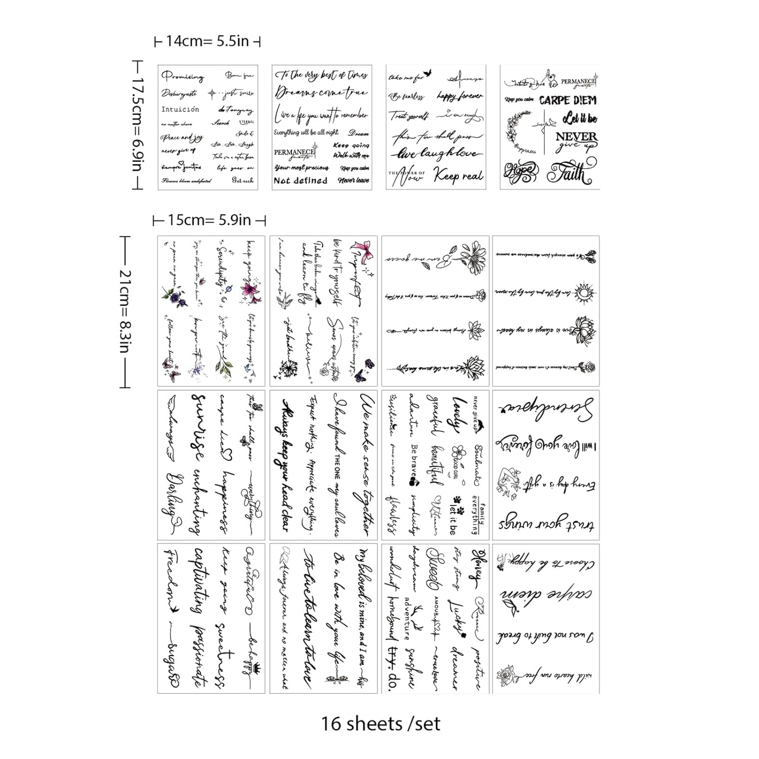• ✿【Tattoo Size And Design】: Each sheet is 6x10 cm (2.3"x3.9") large. These semi permanent minimalist fake temporary tattoos set is a perfect combination for both inspirational quotes and beautiful stylish floral desgins. Not only there is many powerful and meaningful scripts phrases and letter, but also a variety of wild flower designs rose etc.