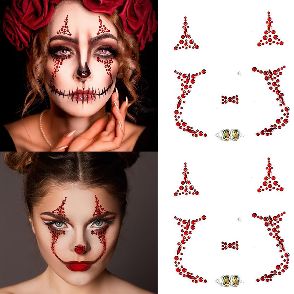 You will get 2 packs red face gems for Halloween cosplay makeup