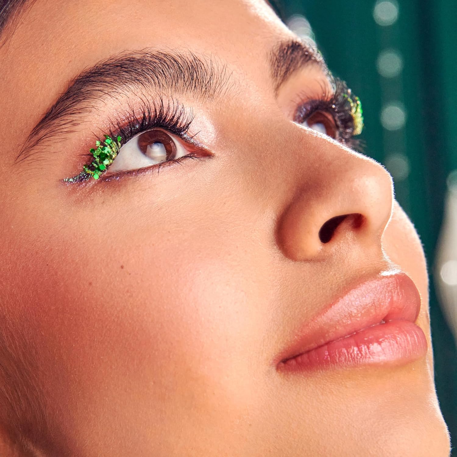FALSCARA X WICKED: FOR GOOD False Eyelashes, ‘Love Without Limits’, 8mm-10mm Natural Volume, Green Glitter, Lash Extension Kit Includes Mini BOND, Mini Applicator, & 10 Lash Clusters(Love Without Limits)