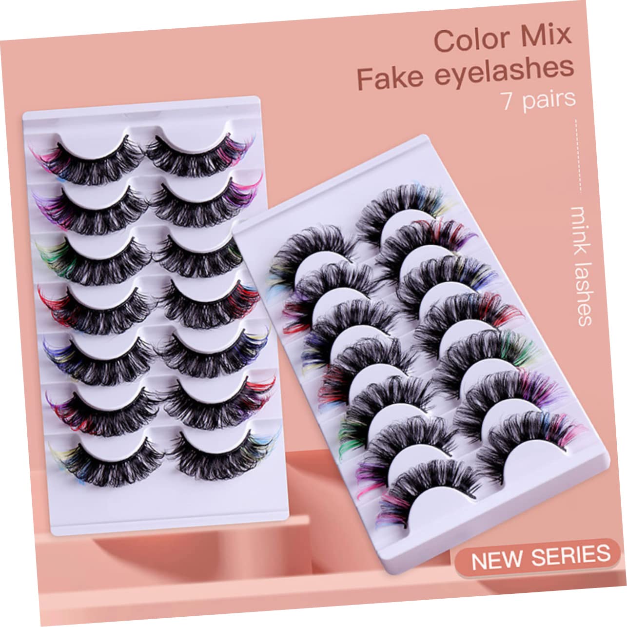 Didiseaon 7 Pairs Colorful Curly Fake Eyelashes for Women Multi Dense Crossed Lightweight Comfortable Cosplay Makeup Easy to Apply and Remove