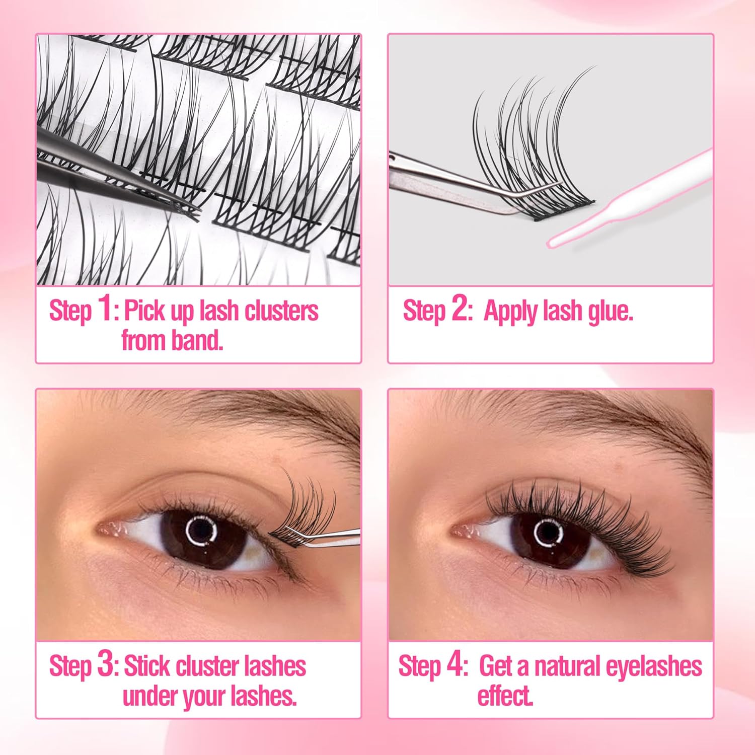 • Delicate Wispy Style for Fairy-Like Dimension: Featuring ultra-fine Japanese fibers with tapered, feather-light ends, these natural cluster eyelash extensions deliver ethereal volume without heaviness. The hair-like texture mimics real lashes beautifully, creating soft, diffused dimension that looks completely authentic. Whether you're going for subtle daytime enhancement or soft-glam evening looks, these wispy individual lashes provide just-right flutter.