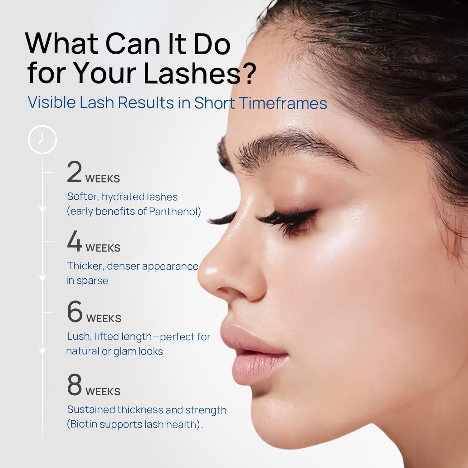 Natural Lash & Brow Enhancement: Infused with natural ingredients, including marine peptides, biotin(vitamin B7) and panthenol, to boost the appearance of longer-looking eyelashes without the need for false lashes. The ultra-nourishing lash serum is designed to deliver your lashes and brows a natural, fuller look with consistent use.