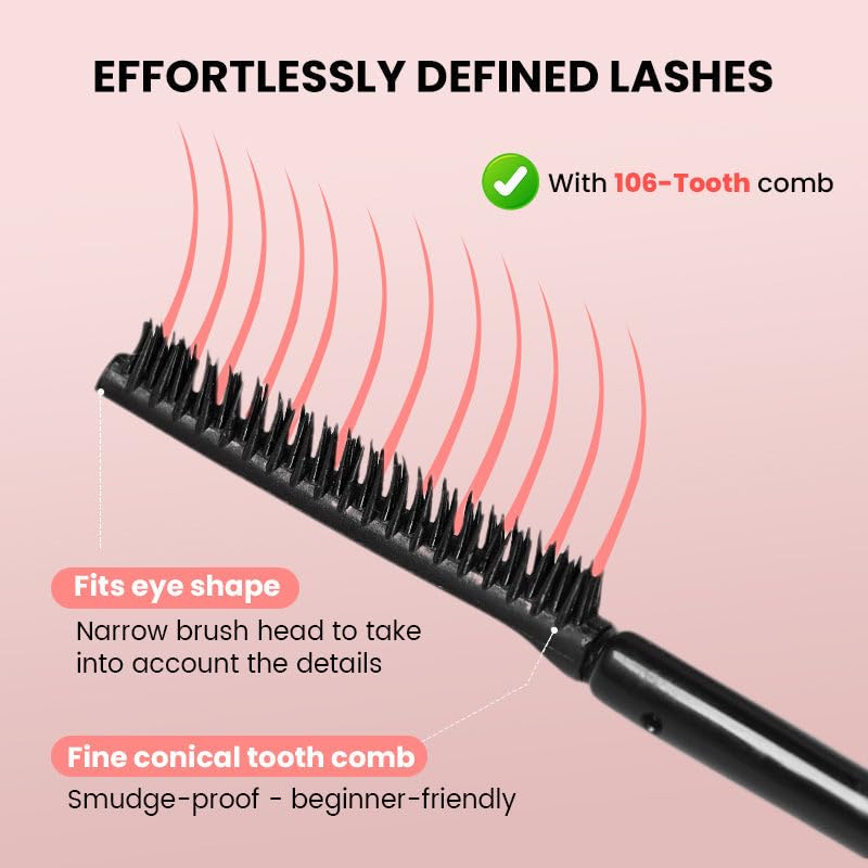 • SMOOTH LASHES OUT ANDMAKE THEM LONGER: Applies evenly without clumping, smoothing short eyelashes, 6 rows of fine tooth combTightly comb through thelash crease, LengtheningEyelashes, wraps evenly from root totip to naturally lengthenand curl lashes