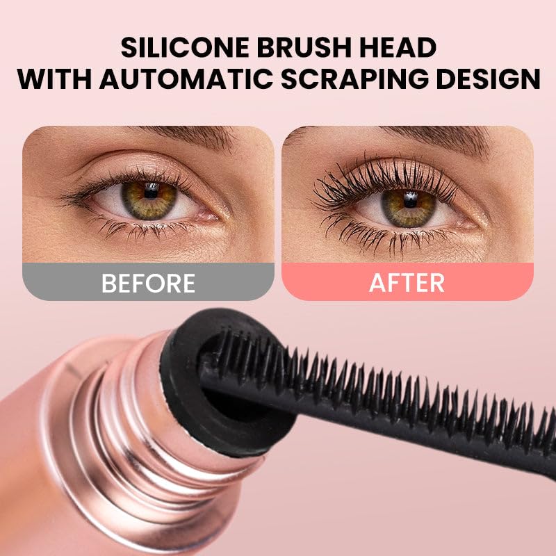 • SILICONE BRUSH HEADWITH AUTOMATIC SCRAPING DESIGN: Silicone brush removes excess mascara,flexible comb and stopper deliver just theright amount-clump-free, mess-free.