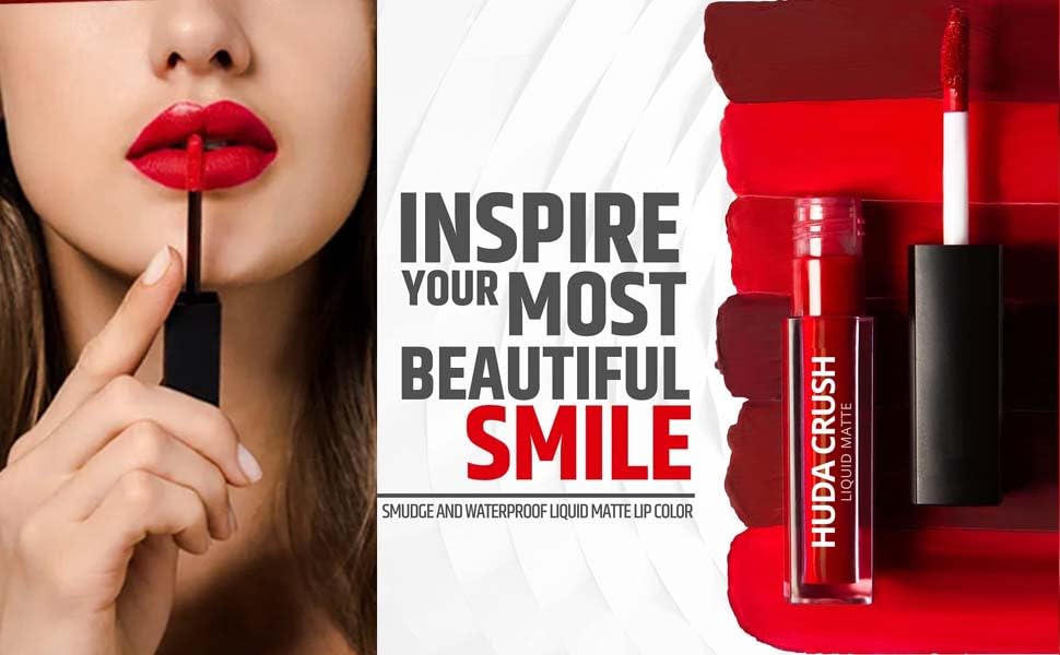 HUDA.CRUSH Beauty Set of 4 Liquid Matte Mini Lipstick - Long Lasting & Waterproof Lipstick Combo Pack Of Red, Deep Red, Wine & Pink Shades for Women and Girls