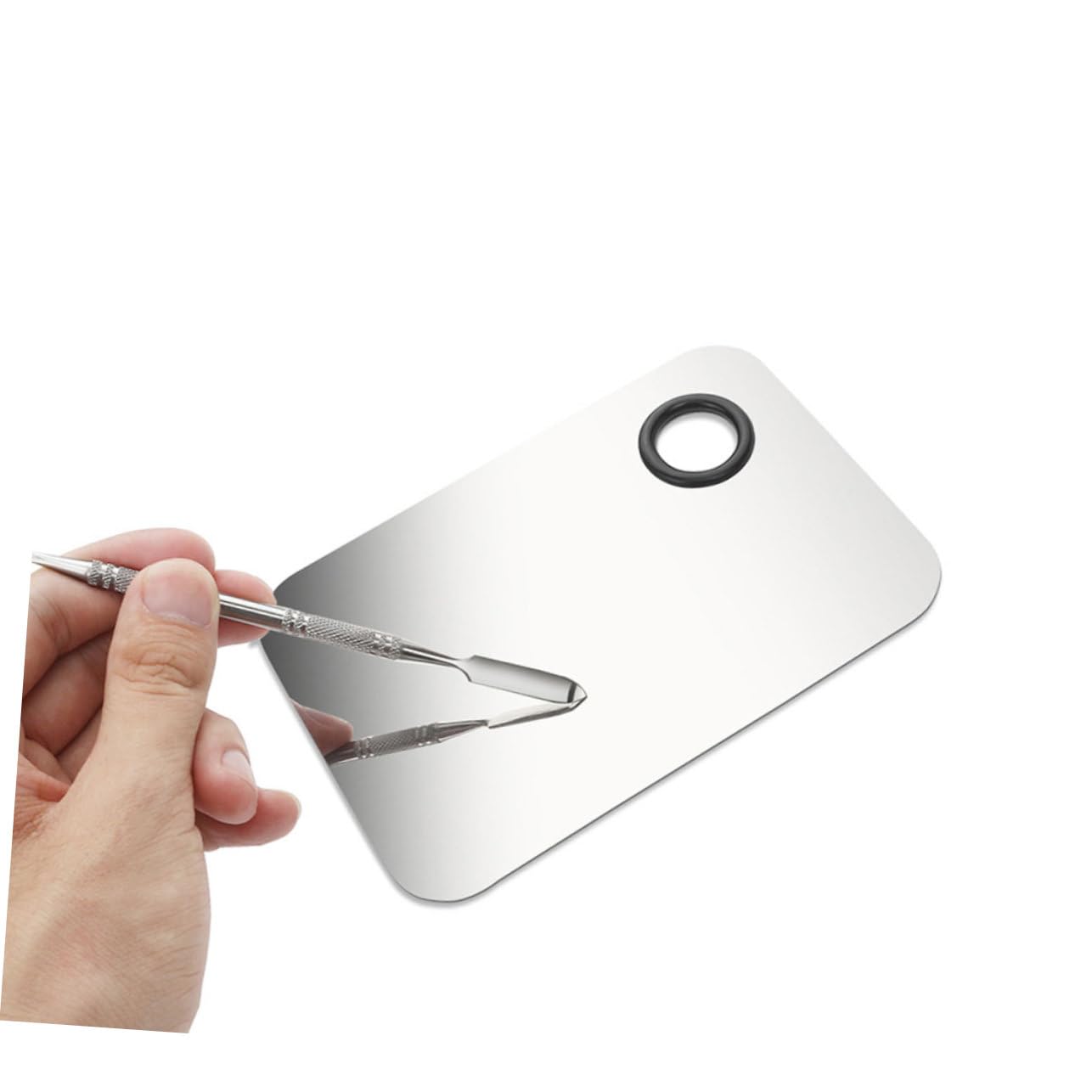 Mixing color pallet-- with the hole design, it is convenient for you to take the palette, so that you can make your makeup in an orderly manner,stainless steel palette