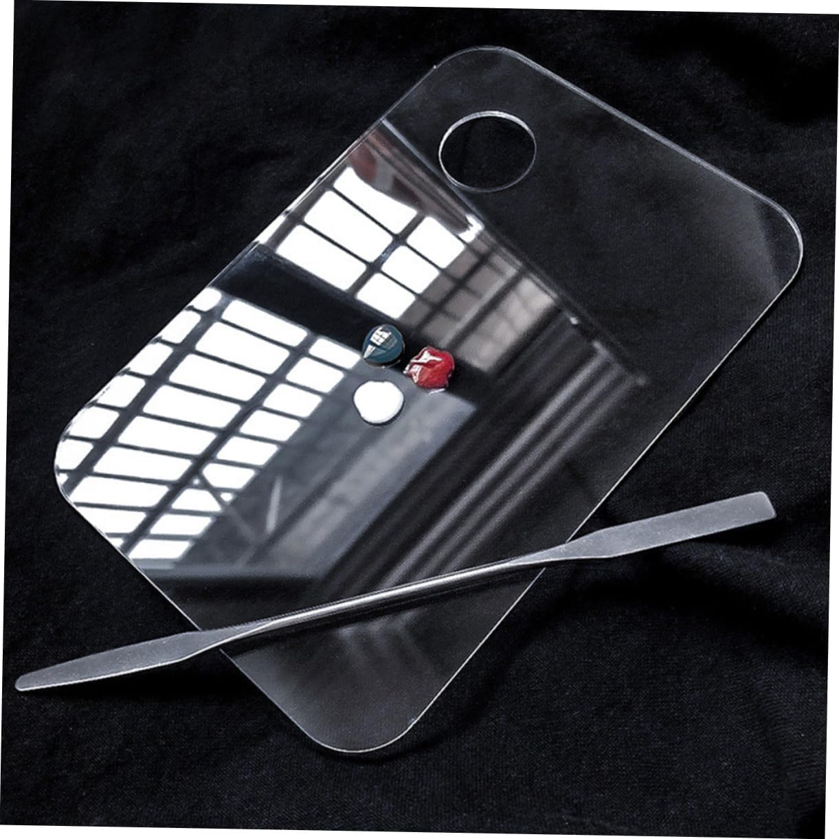 Makeup plate for foundation eyeshadow: the transparent acrylic material used in this ensures clear visibility, allowing users to easily see the colors and textures of the materials they are working with,cosmetic mixing tool