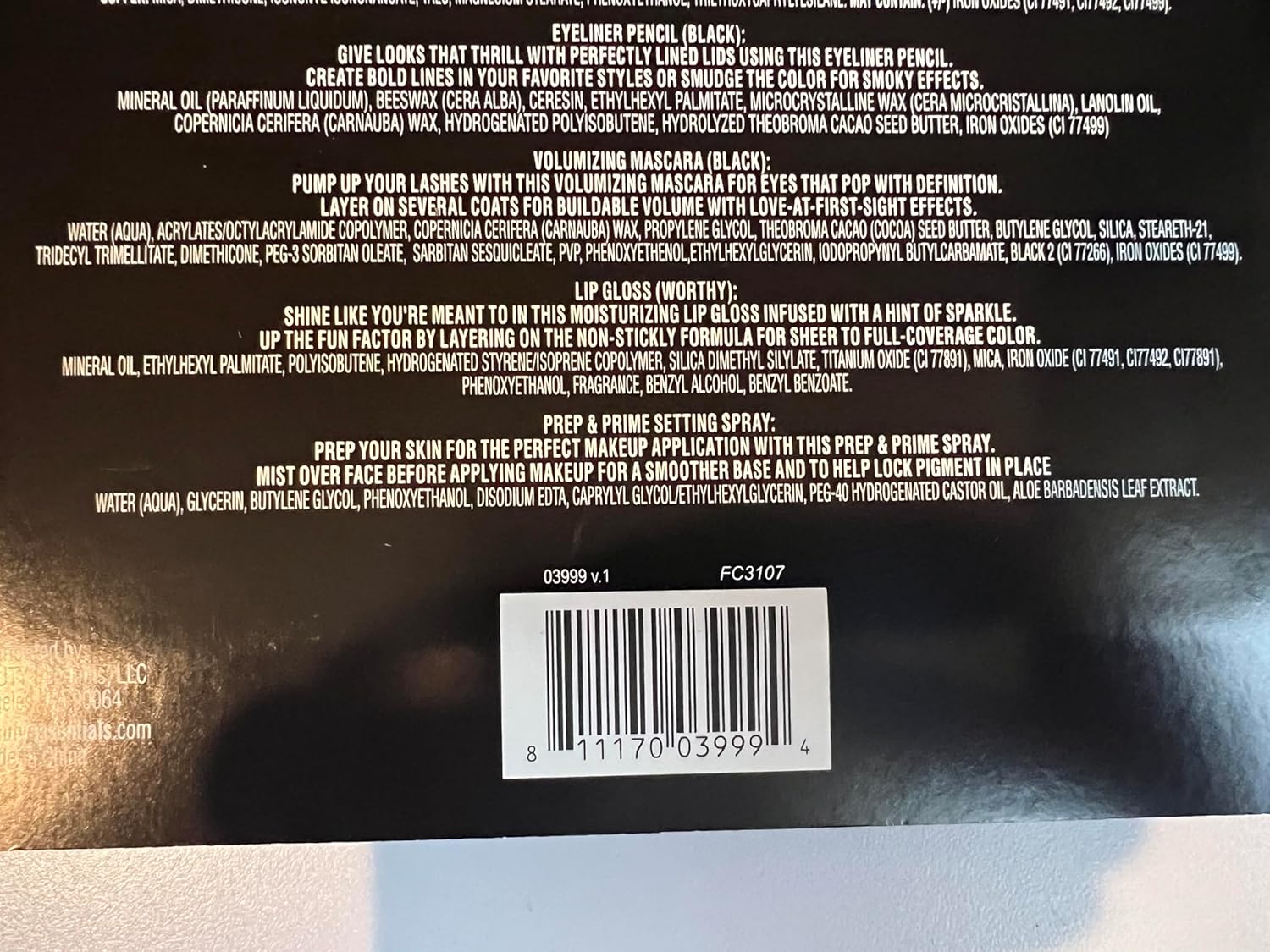 • - EYESHADOW (NUDE) - EYELINER PENCIL (BLACK) - VOLUMIZING MASCARA (BLACK) - LIP GLOSS (WORTHY) - PREP & PRIME SETTING SPRAY Wear alone or mix & Match this eyeshadow with other for lids that lure'em in at first glance. -