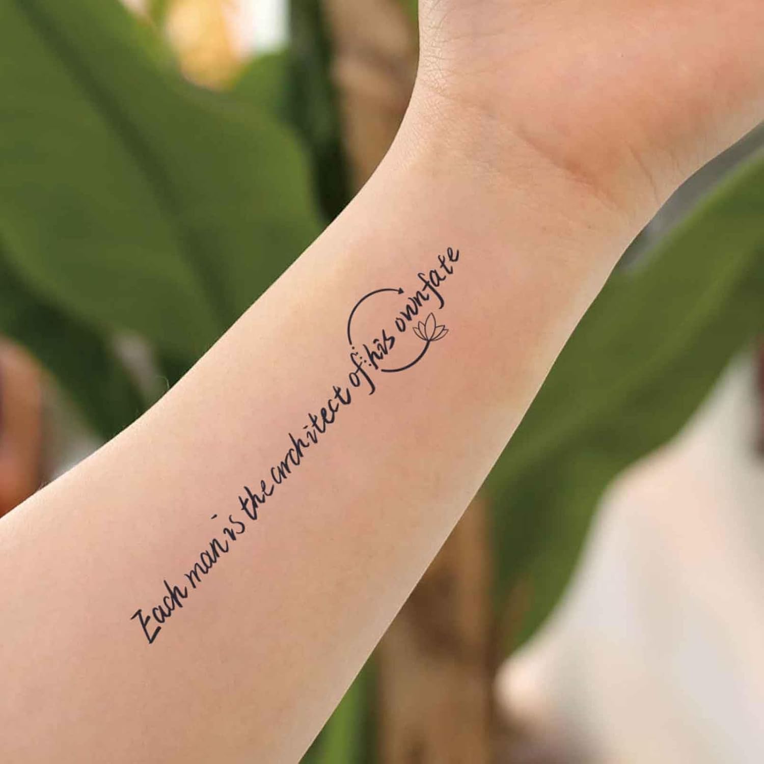 ✿【Tattoo Size And Design】: Each sheet is 6x10 cm (2.3"x3.9") large. These semi permanent minimalist fake temporary tattoos set is a perfect combination for both inspirational quotes and beautiful stylish floral desgins. Not only there is many powerful and meaningful scripts phrases and letter, but also a variety of wild flower designs rose etc.