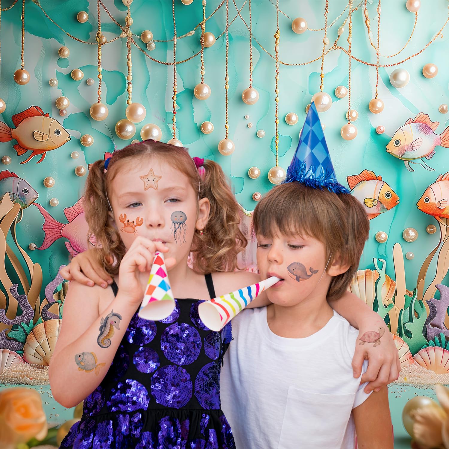 • Use Methods and Warm Tips: Under the sea party decorations are easy to use, you need to tear off the surface film, then wet with water, press for about 20 seconds, and finally gently tear off to get the team tattoo; Keep the tattoo out of water for 2 hours to prolong its existence.