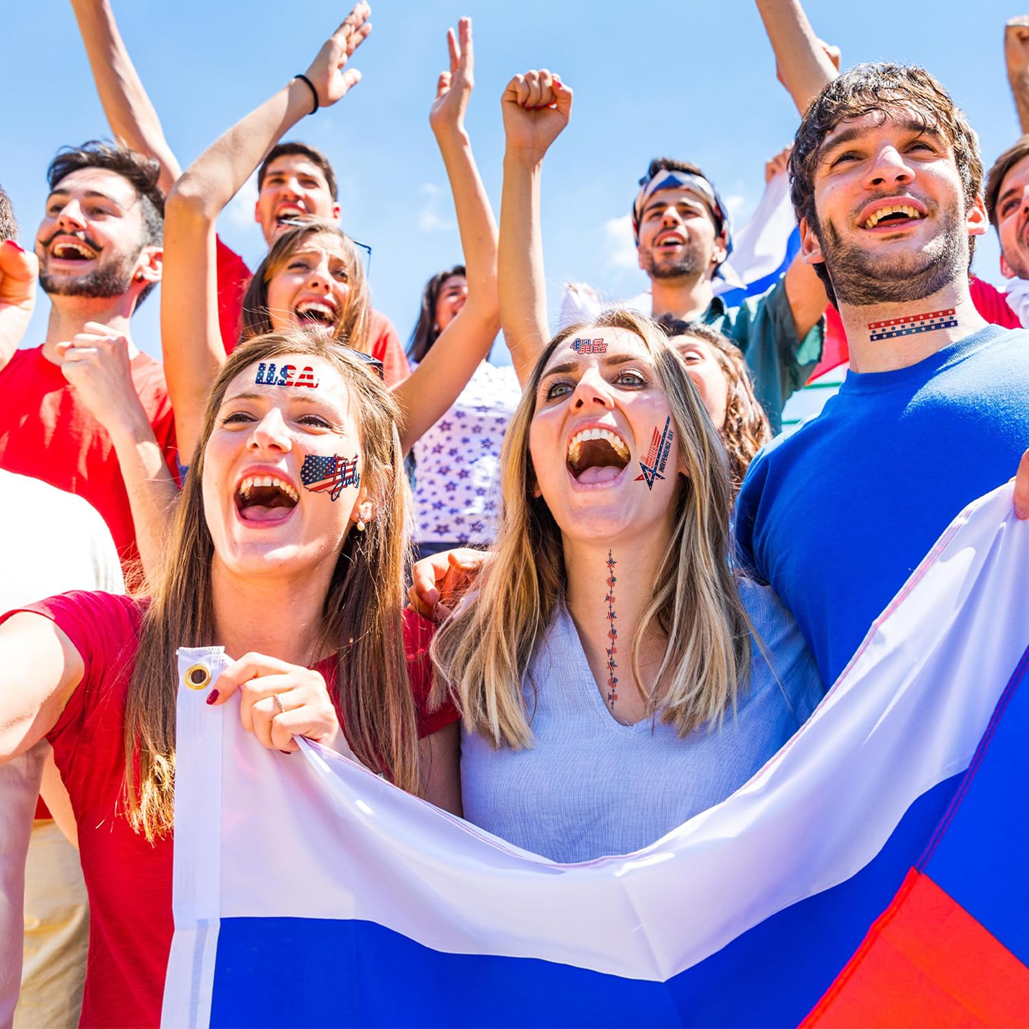 【EASY TO USE】:Apply these independence day temporary tattoos effortlessly and quickly with our simple 4-step process! Just remove the clear film, apply the tattoo on clean, dry skin, dab it with a damp paper towel, and remove the paper. In less than a minute, you'll have a stunning independence day tattoo that looks like the real deal!