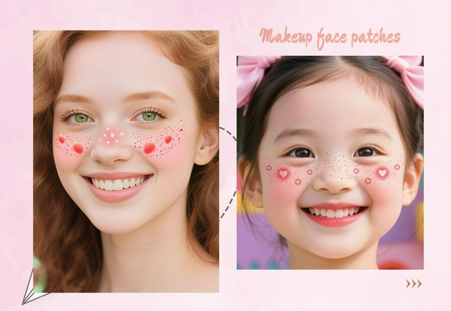 【Easy 3-Step Application】Simply peel, wet, and press! The stickers adhere instantly with light pressure, leaving no mess or residue. Removal is just as simple with soap and water. Tip: In order to keep the effect of the freckle makeup longer, this glitter tattoos for kids is made with a waterproof formula, so it needs to be removed with makeup remover wipes!