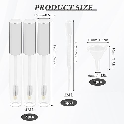 【Comprehensive Kit】 You will receive a complete beauty kit that includes 8 x 4ml empty mascara tube and wand, 8 Rubber Inserts, 4 droppers, and 4 funnels. This set is designed to meet your daily needs and elevate your eyelash and eyebrow care routine. Each component is carefully selected to ensure you can easily personalize your beauty regimen.