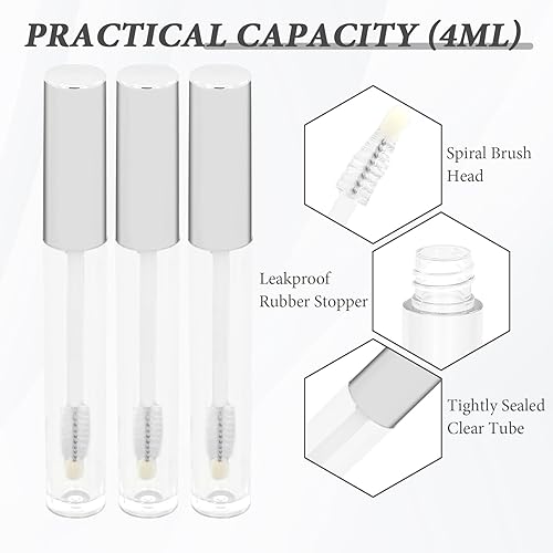 【Versatile DIY Beauty Blending】These empty mascara tube and eyelash spoolie tools are great for customized uses like castor oil, coconut oil, brow serums, or essential oils. They also work as empty lip gloss tubes with wand, adapting to your creative blends for flexible personal care. Craft unique solutions that match your style, turning every application into a personalized experience.