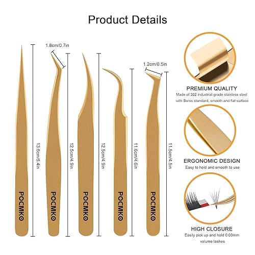 • Premium Stainless Steel: POCMKO eyelash tweezers are crafted from top-grade, rust-resistant stainless steel for long-lasting durability and good performance.