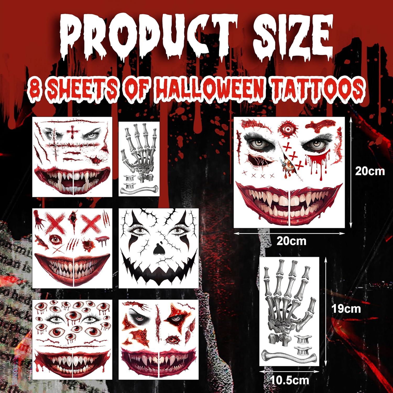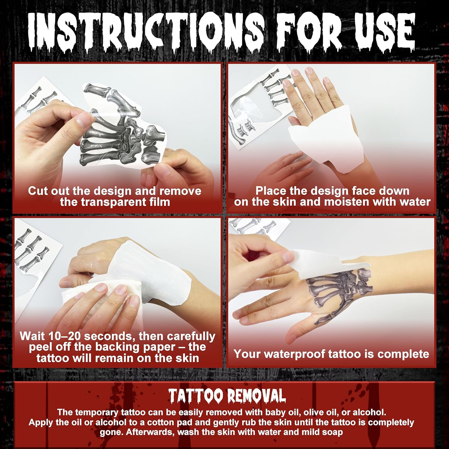 [Perfect Party Highlight] Whether it’s Halloween, Carnival, themed parties, or cosplay, these tattoos are the perfect accessory for an unforgettable look. Wear them on your face, arms, neck, or other body parts to instantly create a realistic spooky atmosphere.