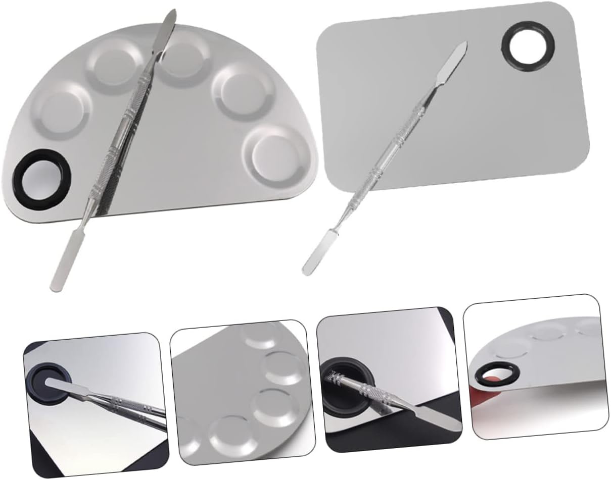 Stainless steel makeup pallet--with the hole design, it is convenient for you to take the pallet, so that you can make your makeup in an orderly manner,cosmetic mixing plates