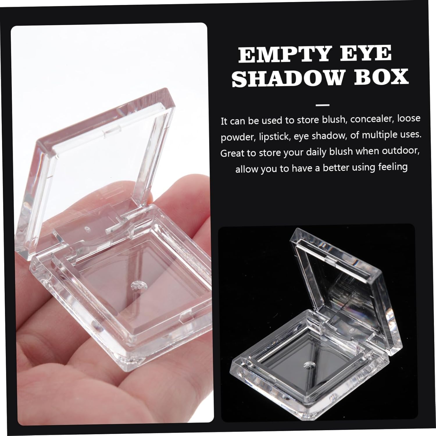 Clear empty eyeshadow pan square:use the eyeshadow pan to DIY your favorite eyebrow powder, blush, lipstick, foundation, eye shadow, or other cosmetics,eyeshadow palette