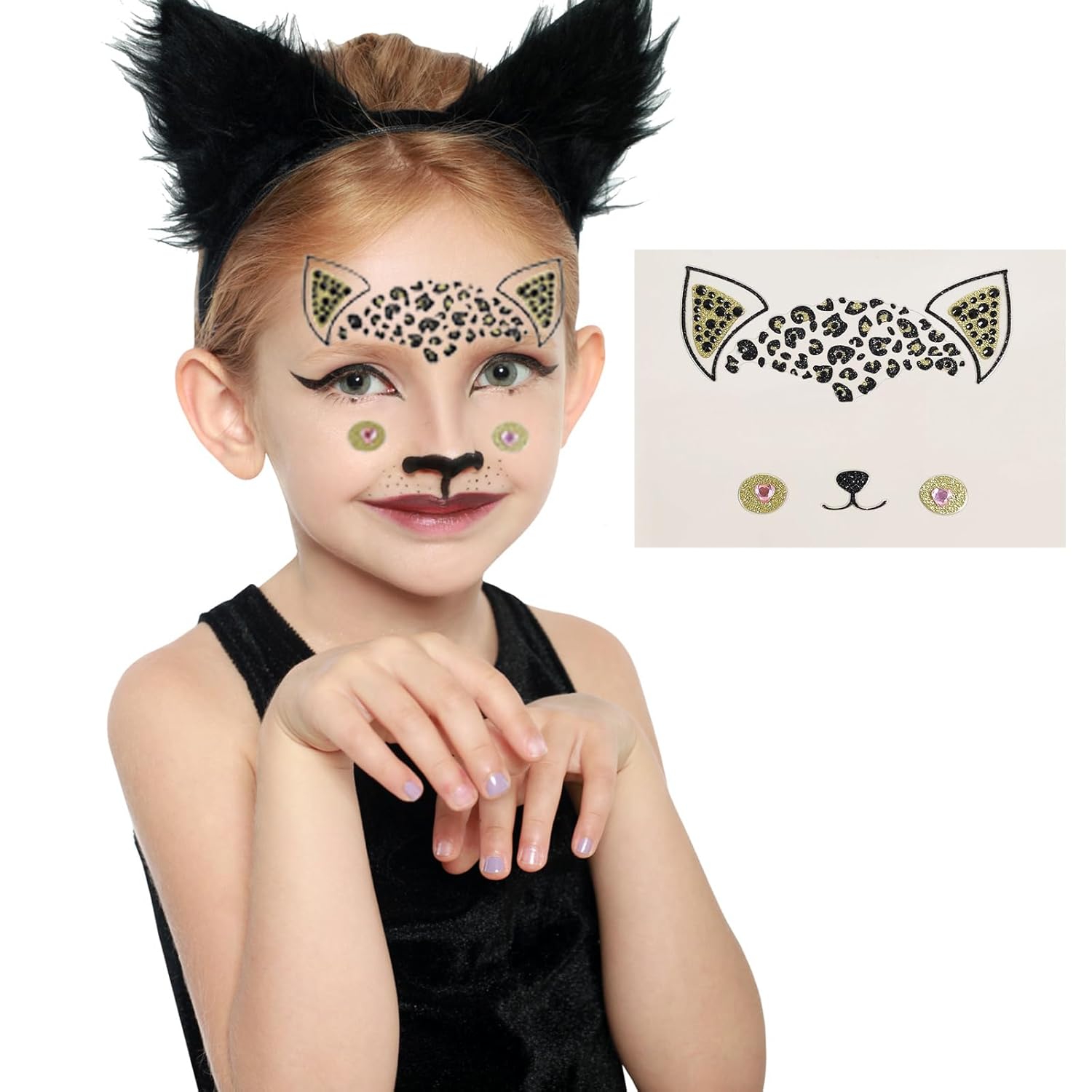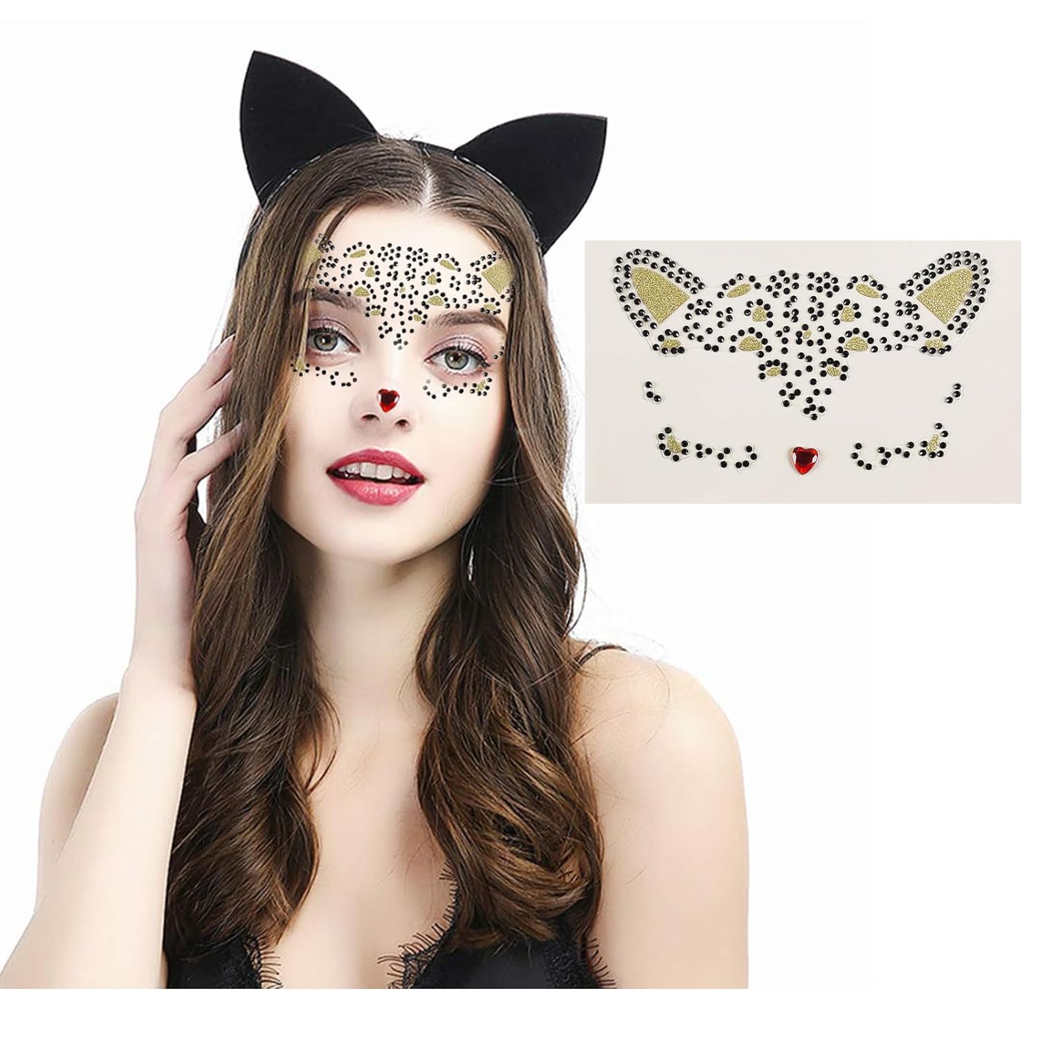 What You Get: 2 cat face gems sticker with different shapes, Use these crystal face jewels along to accent your beautiful Halloween makeup