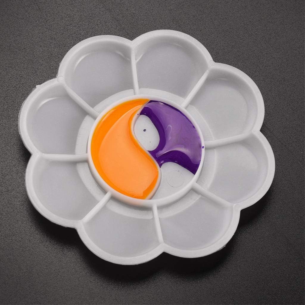 Unique design. Round flower shaped plastic pallets with 10 slots and 2 center tanks, ideal for mixing colors and preventing cross contamination.