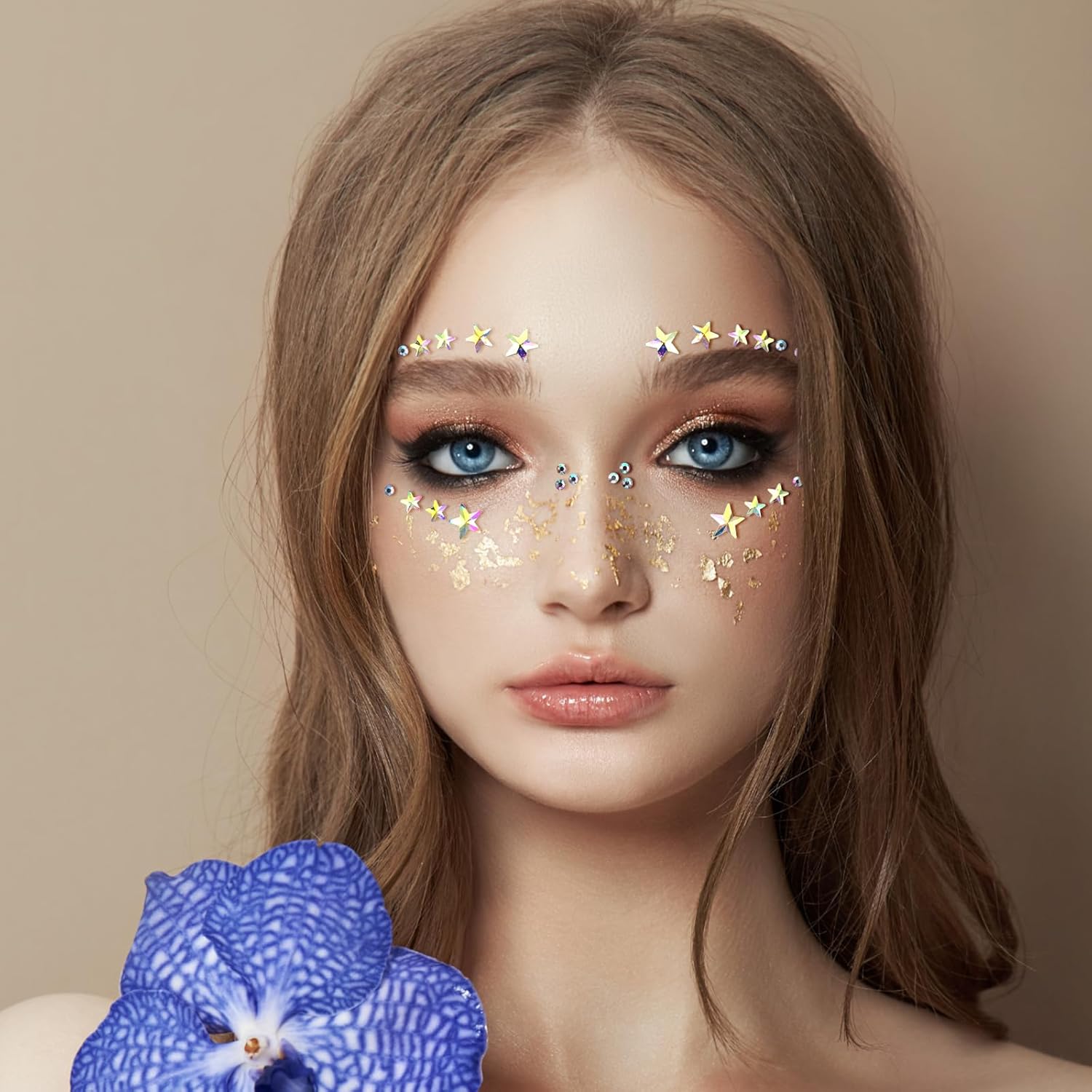 【Convenient to Use】The festival face jewels are very convenient to use. You clean your face first, and then you can paste the star rhinestones on your face according to your design. The glitter face stickers are sticky and will not fall off easily.