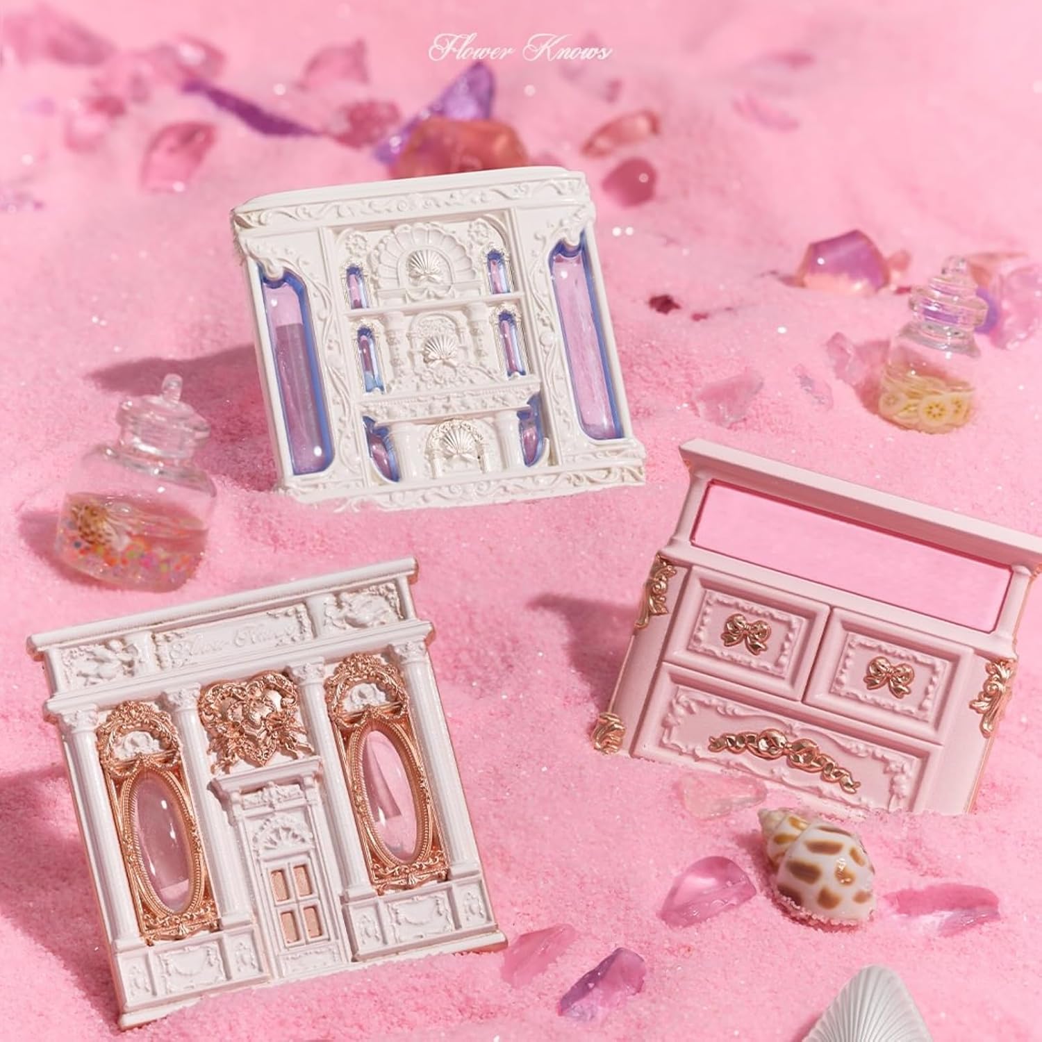Flower Knows Strawberry Cupid Makeup Palette 01+Fridge Magnet Set,Eyeshadow,Blush,Highlighting & Contour All-in-One Face Makeup Palette with 5 Matte+2 Shimmer Neutral Shades