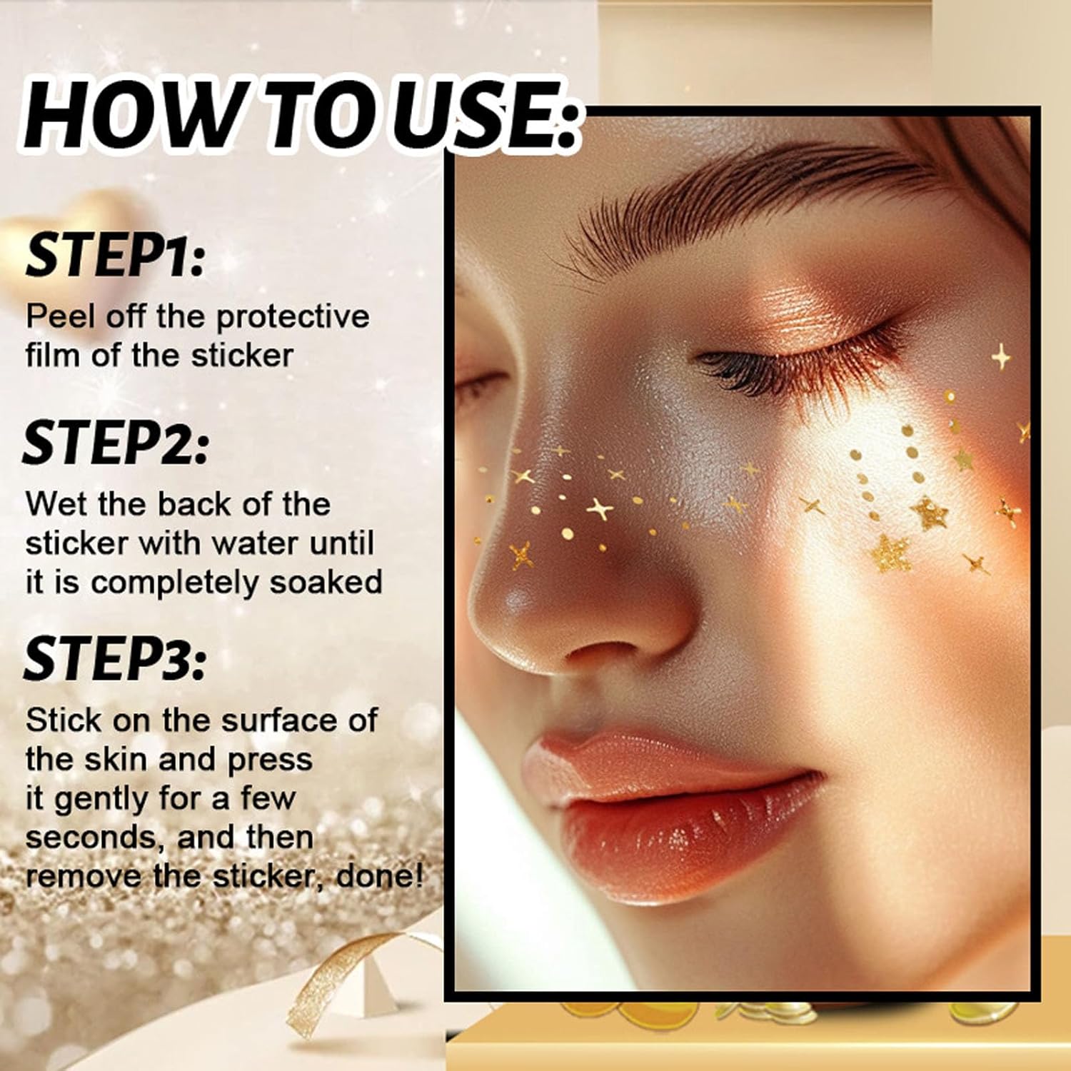 【Sweatproof & Waterproof, Lasts All Day】Made from high-quality waterproof material, these patches resist sweat, rain, and oil. Whether you're at an energetic music festival, a busy workday, or a romantic dinner date, your golden freckles will stay brilliantly shiny from morning till night—without smudging or fading.